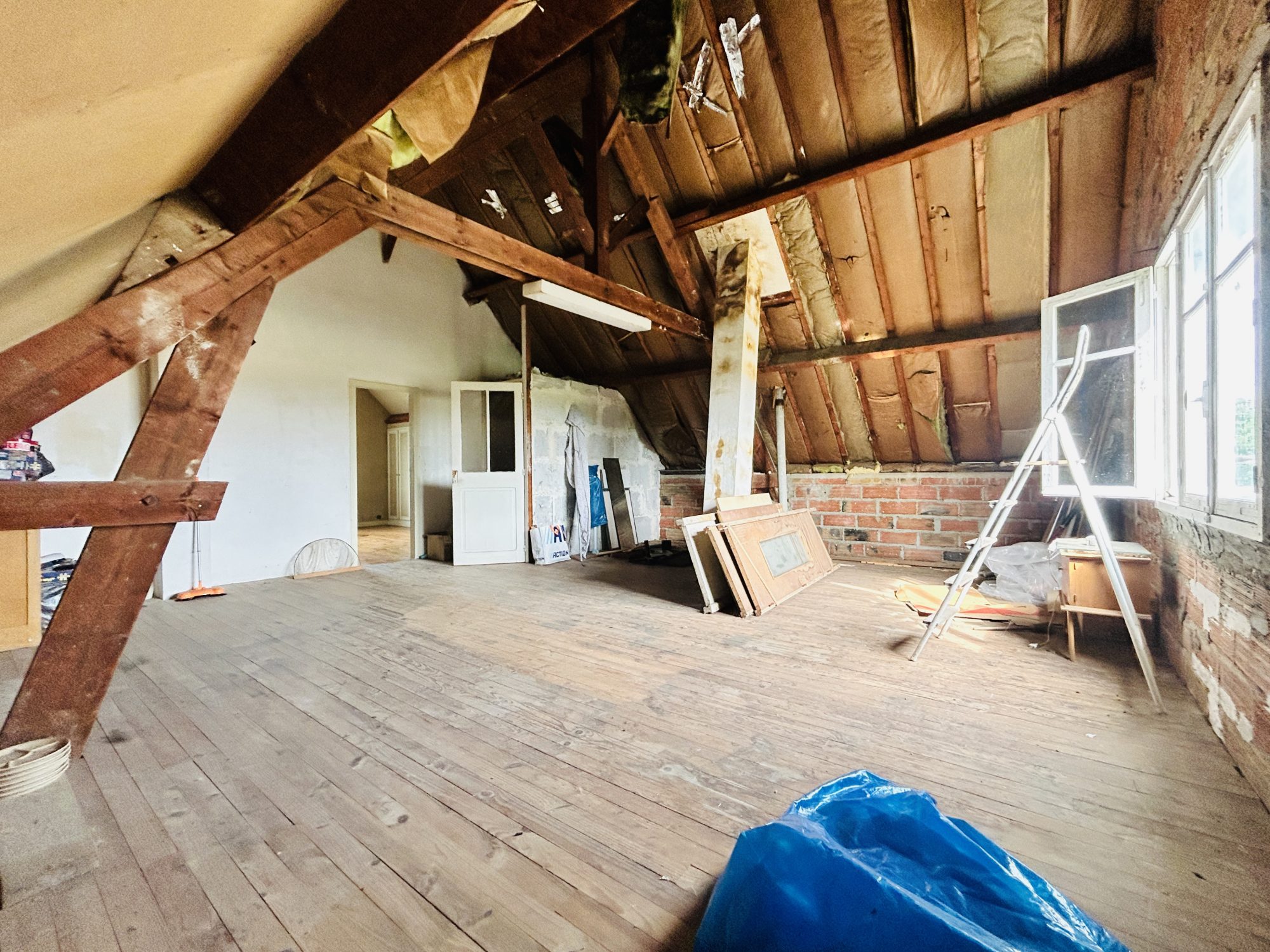 ...Le premier étage est constitué : d'une pièce paliere, 2 chambres et 1 bureau...