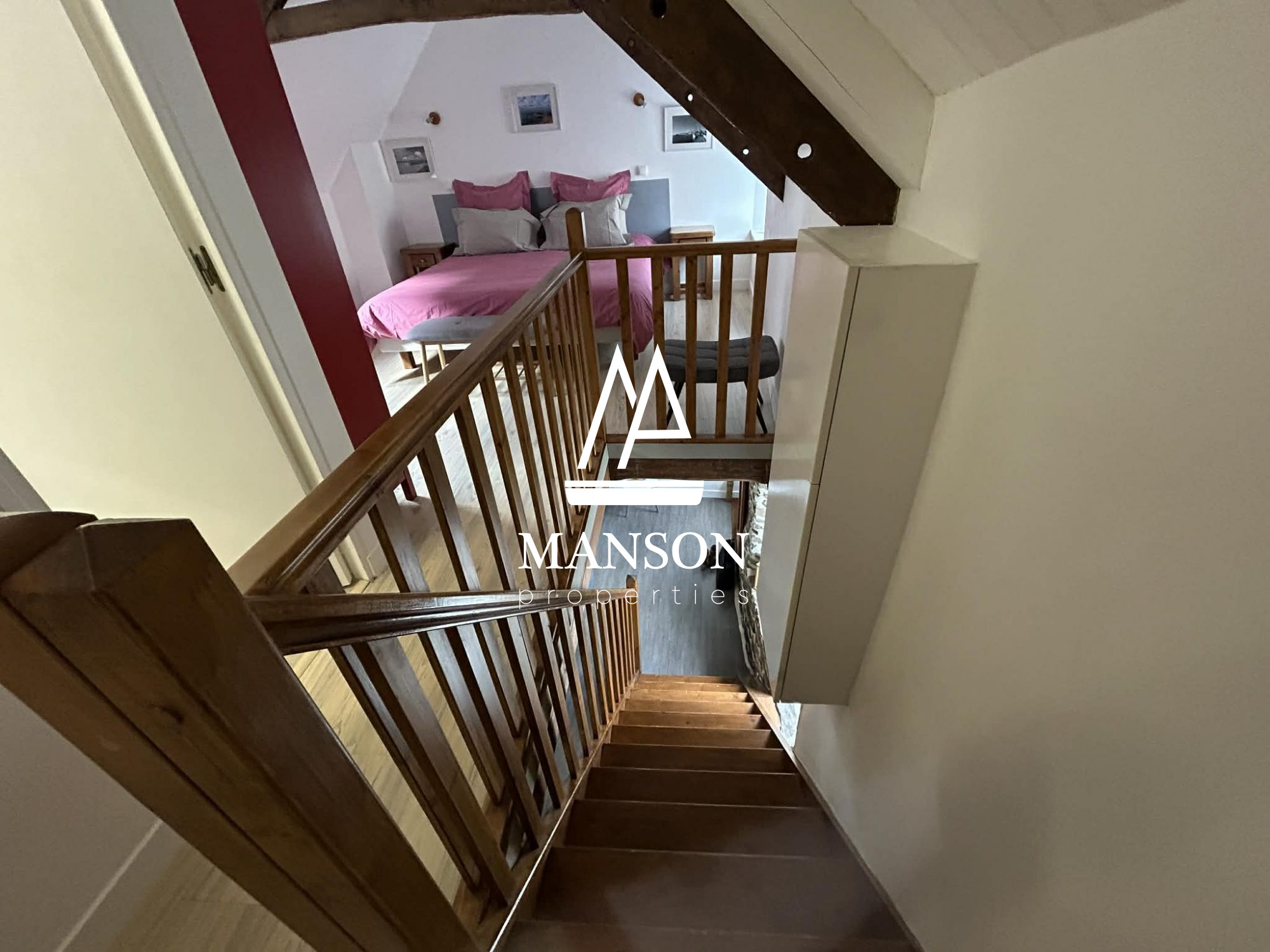 ...À l'étage : palier desservant 3 chambres dont une avec salle d'eau privative, WC...