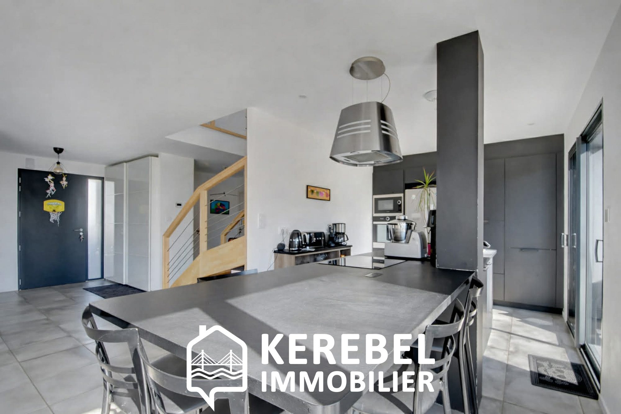 ...Composée au RDC d'une entrée, une cuisine ouverte sur salon-séjour donnant sur une vaste terrasse...