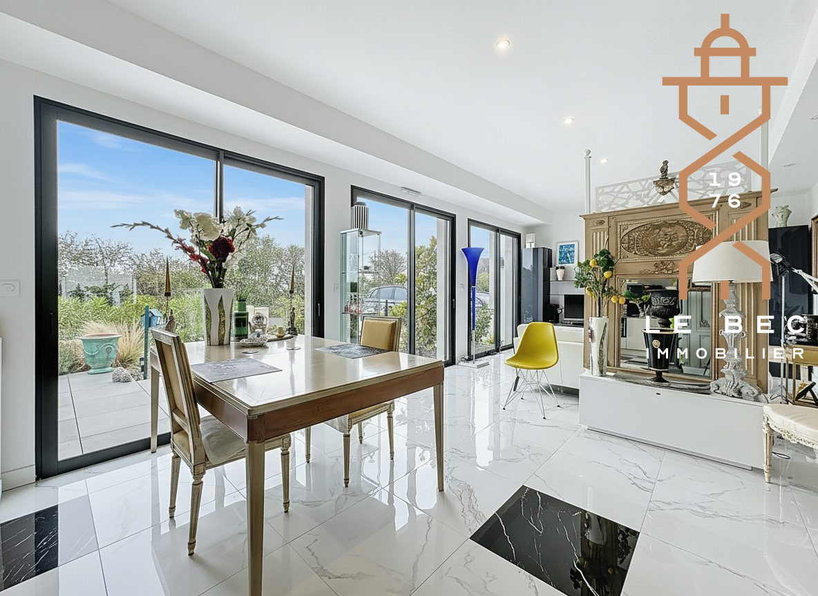 ...Édifiée sur un terrain joliment paysagé, elle offre une vie complète de plain-pied avec une...