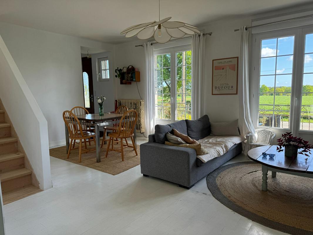...Le hall donne sur un agréable salon séjour avec insert et une cuisine ouverte, aménagée, équipée...