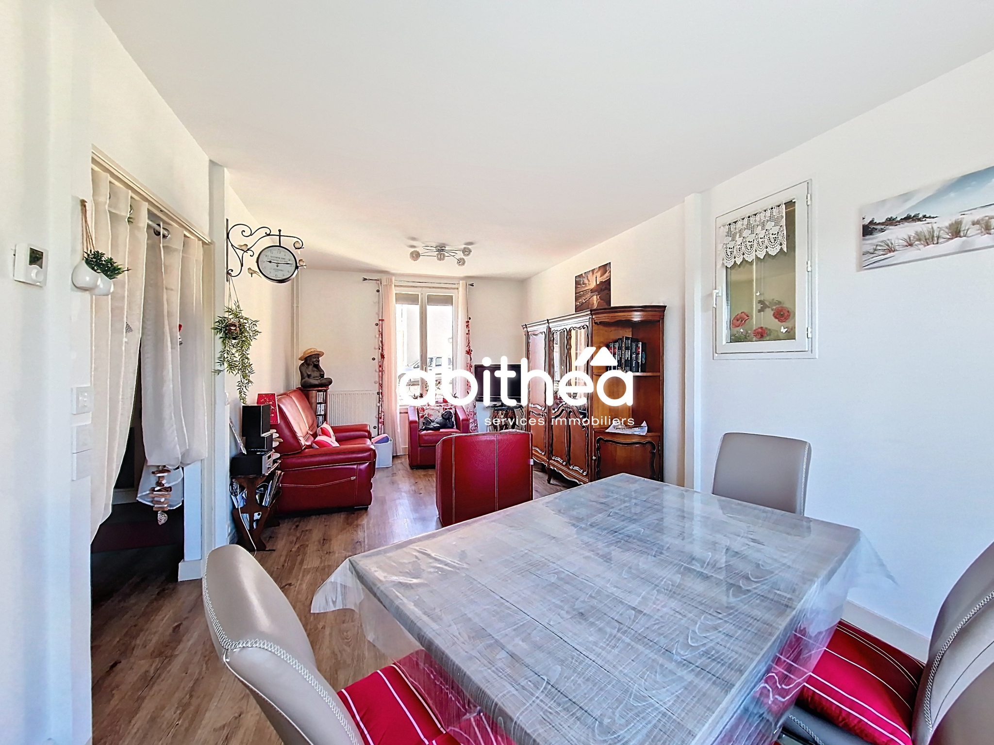 ... séjour traversant lumineux de plus de 20m2,d'une cuisine séparée aménagée avec espace repas...