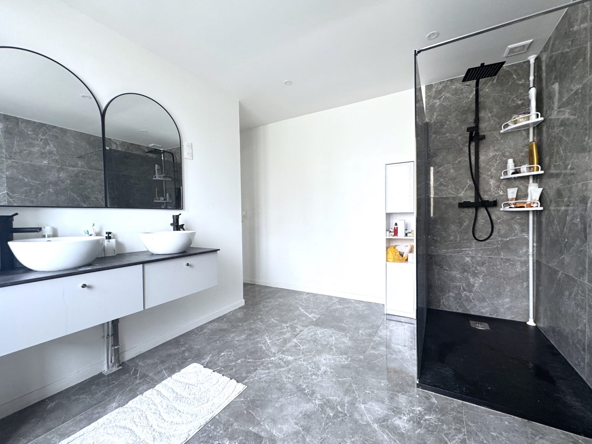 ...Au rez-de-chaussée : entrée cathédrale avec placard, cuisine aménagée et équipée, séjour double...