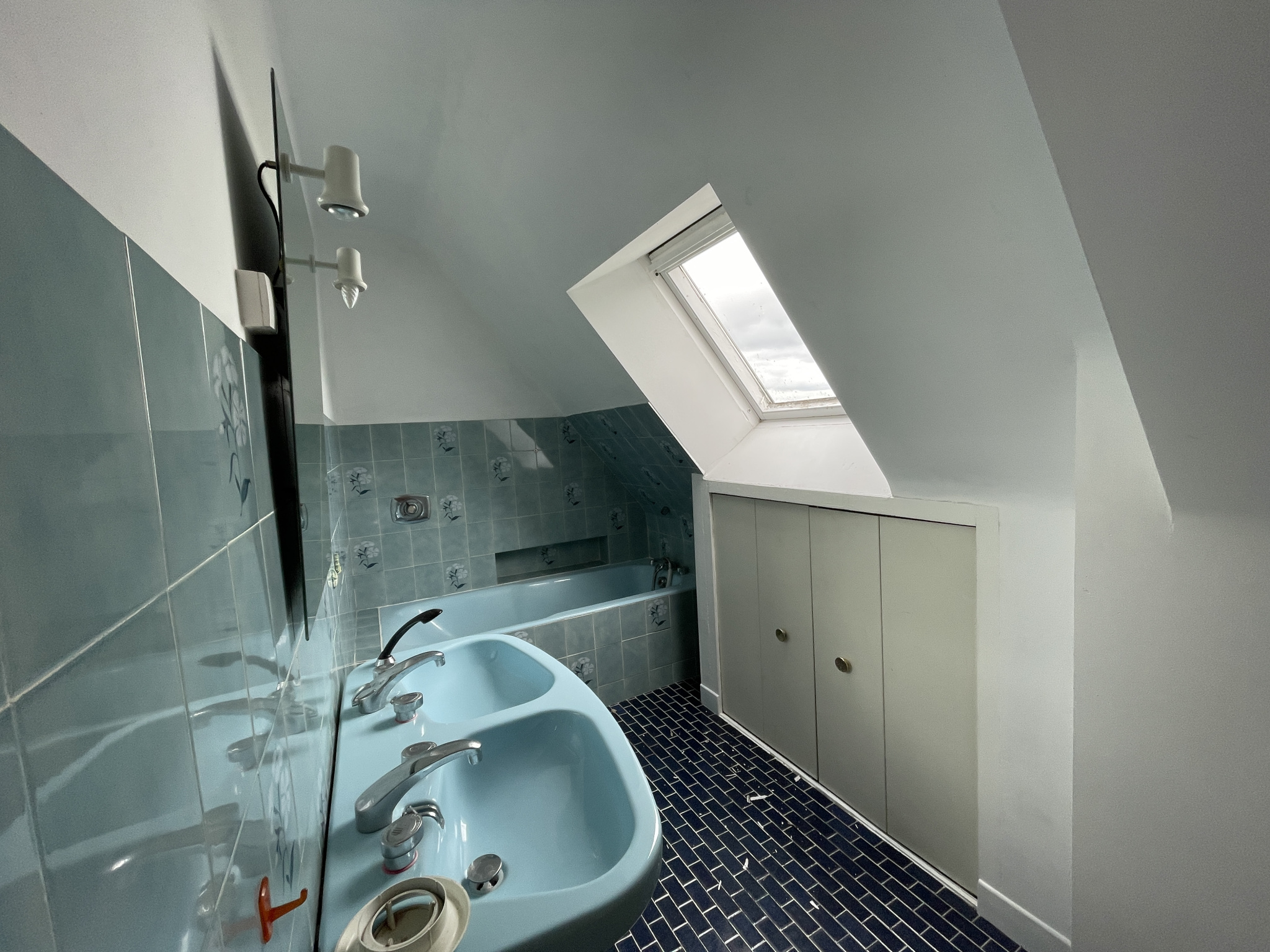 ...A l'étage : un palier dessert deux chambres, salle de bains/douche avec WC, ainsi qu'un grenier...