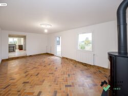 ...Au premier étage, vous découvrirez : Une belle pièce de vie lumineuse, équipée d'un poêle...