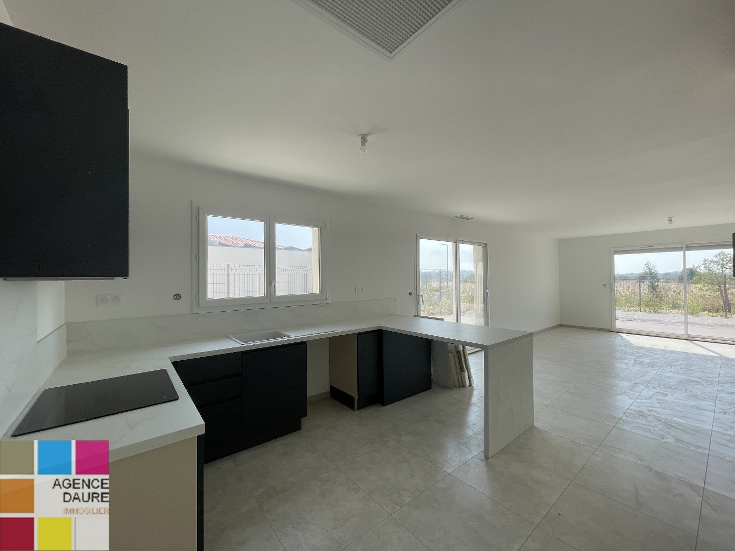 ...Au rez-de-chaussée : une belle pièce de vie lumineuse avec séjour et cuisine US, une suite...