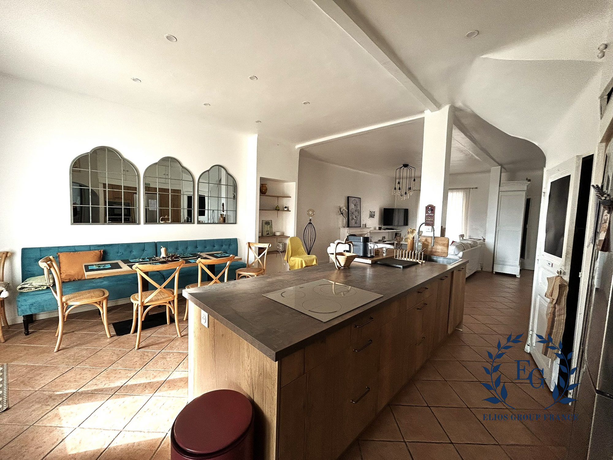 ...Au rez-de-chaussée, un vaste séjour lumineux d'environ 40m² avec cuisine américaine équipée...