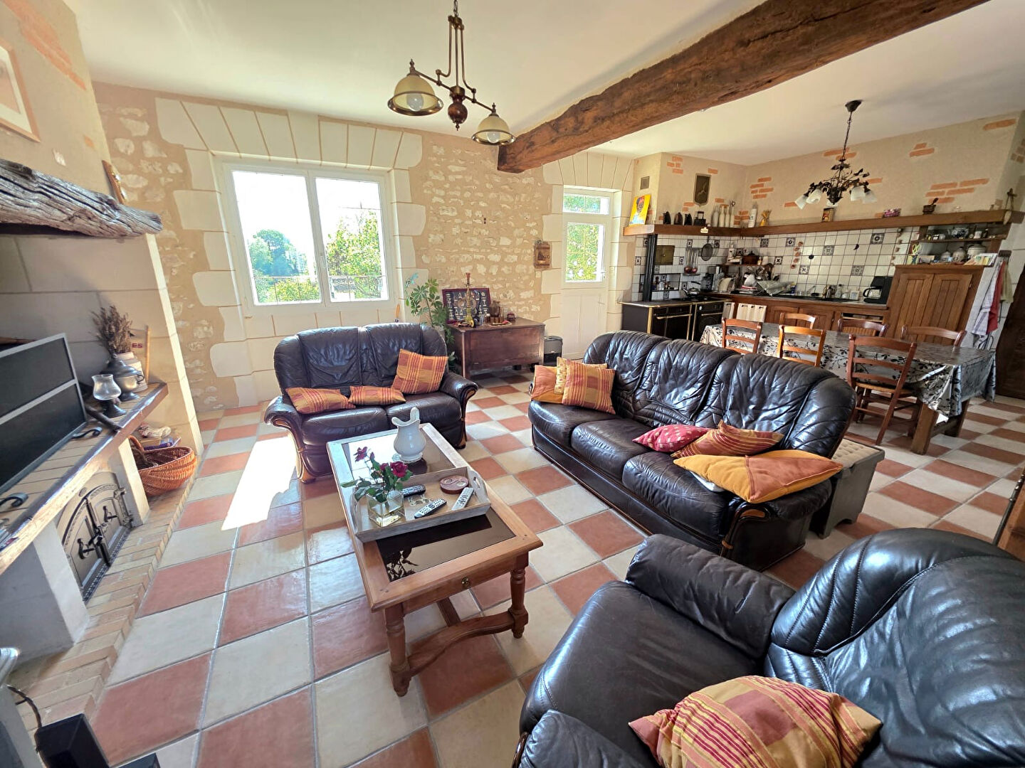 ...A l'étage, un grand appartement avec 3 chambres, salle d'eau et cuisine...