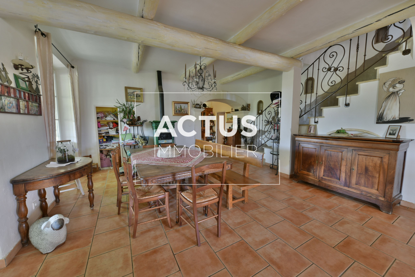 ...Séparé en 2 habitations dont la maison principale de 335 m2 est composée de grandes pièces de vie...