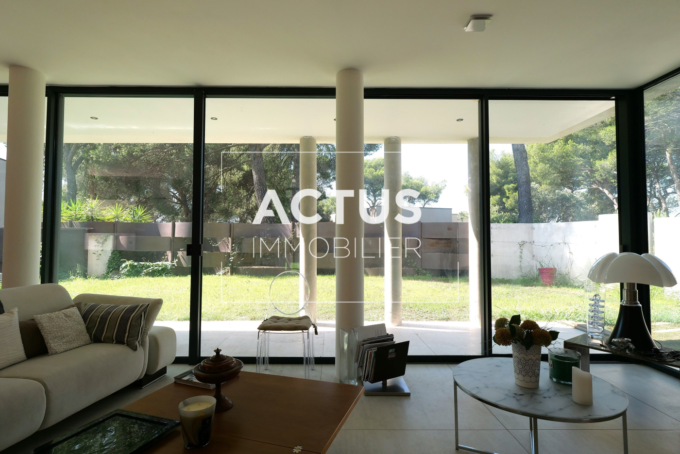 ...Au sein d'un environnement privilégié, cette maison très contemporaine aux larges baies vitrées...
