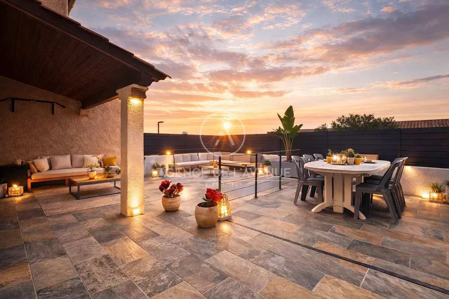 ...Vous profiterez de deux terrasses, l?une exposée plein sud et l?autre au nord...