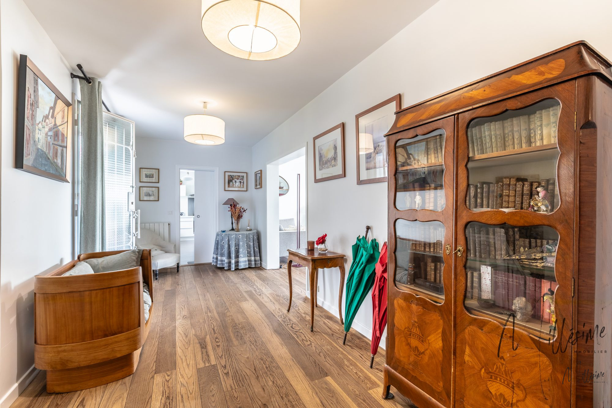 ...Dès l'entrée, vous découvrirez un espace accueillant desservant un coin bibliothèque/bureau...