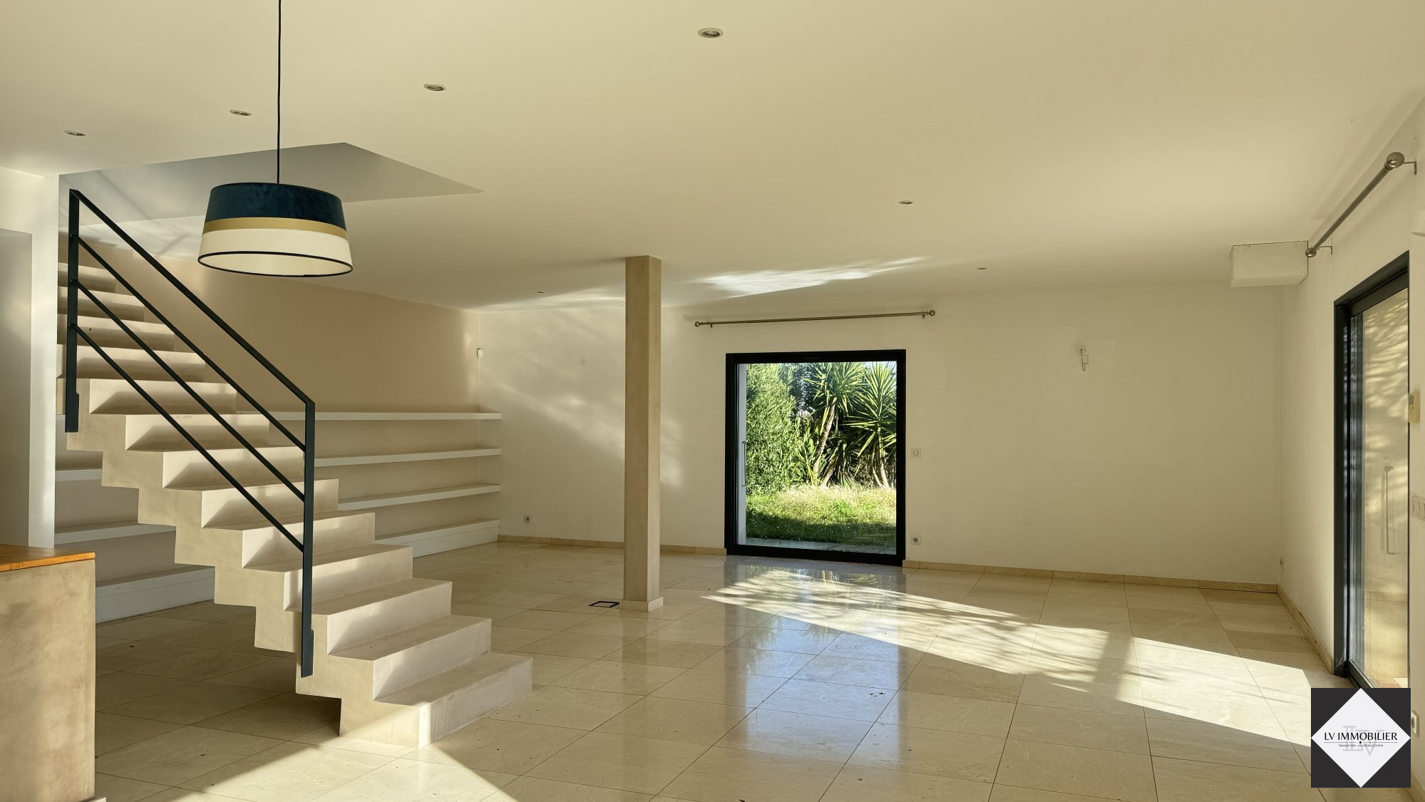 ...Nous trouvons en rez de jardin un espace de vie de 80 M², une arrière cuisine et un WC...
