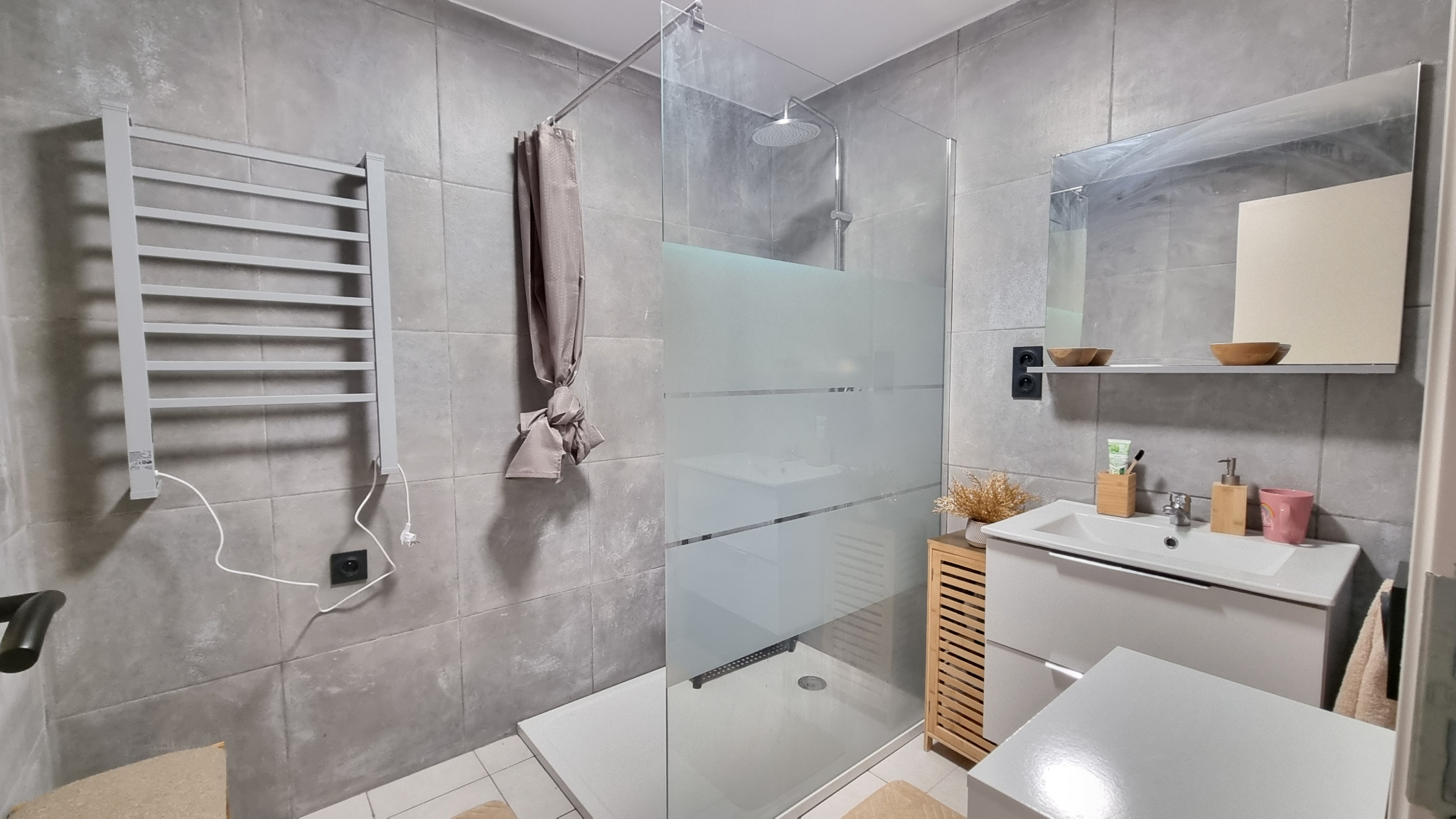 ... un séjour lumineux, une cuisine séparée toute équipée, 3 chambres, un wc, une salle d'eau, une buan...