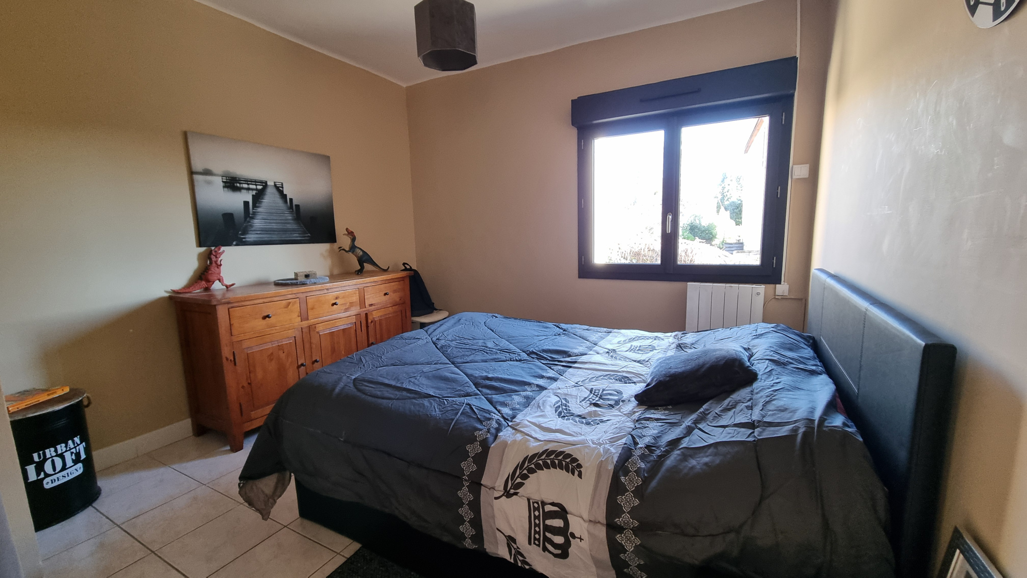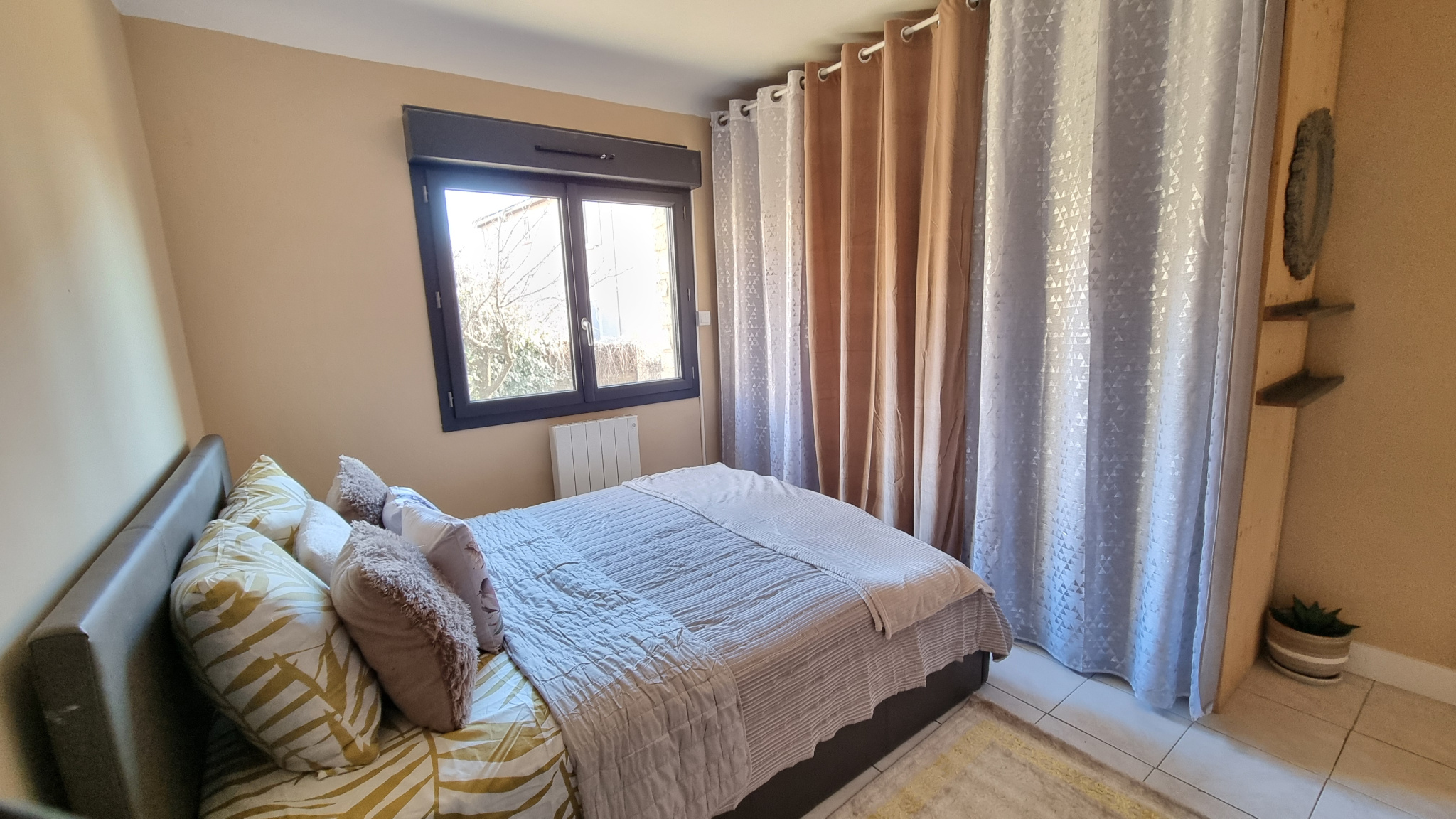 ... un beau séjour lumineux et plafond rampant.