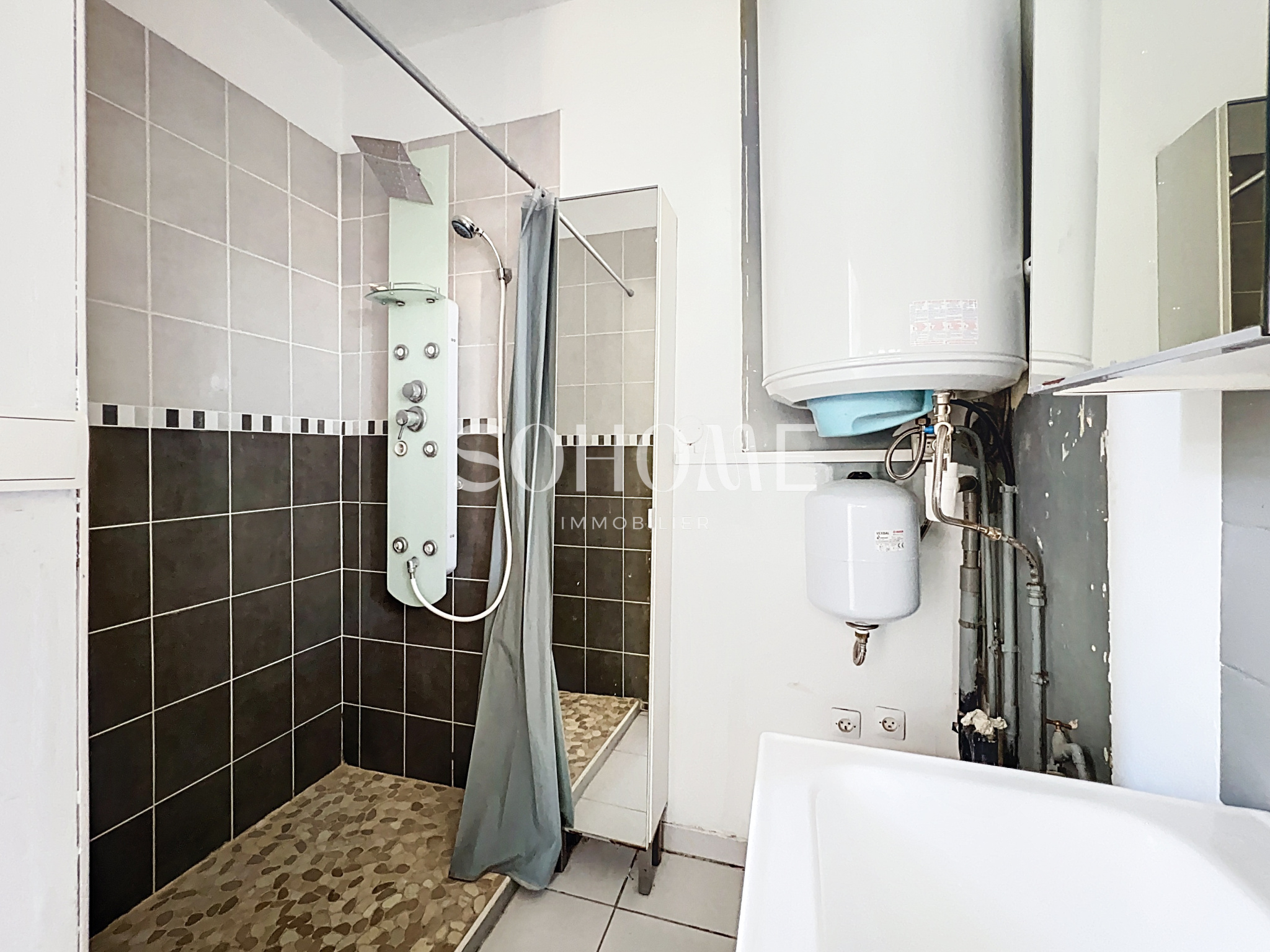...Poursuivez la visite par la loggia qui offre une vue dégagée sur un vaste terrain aménageable...