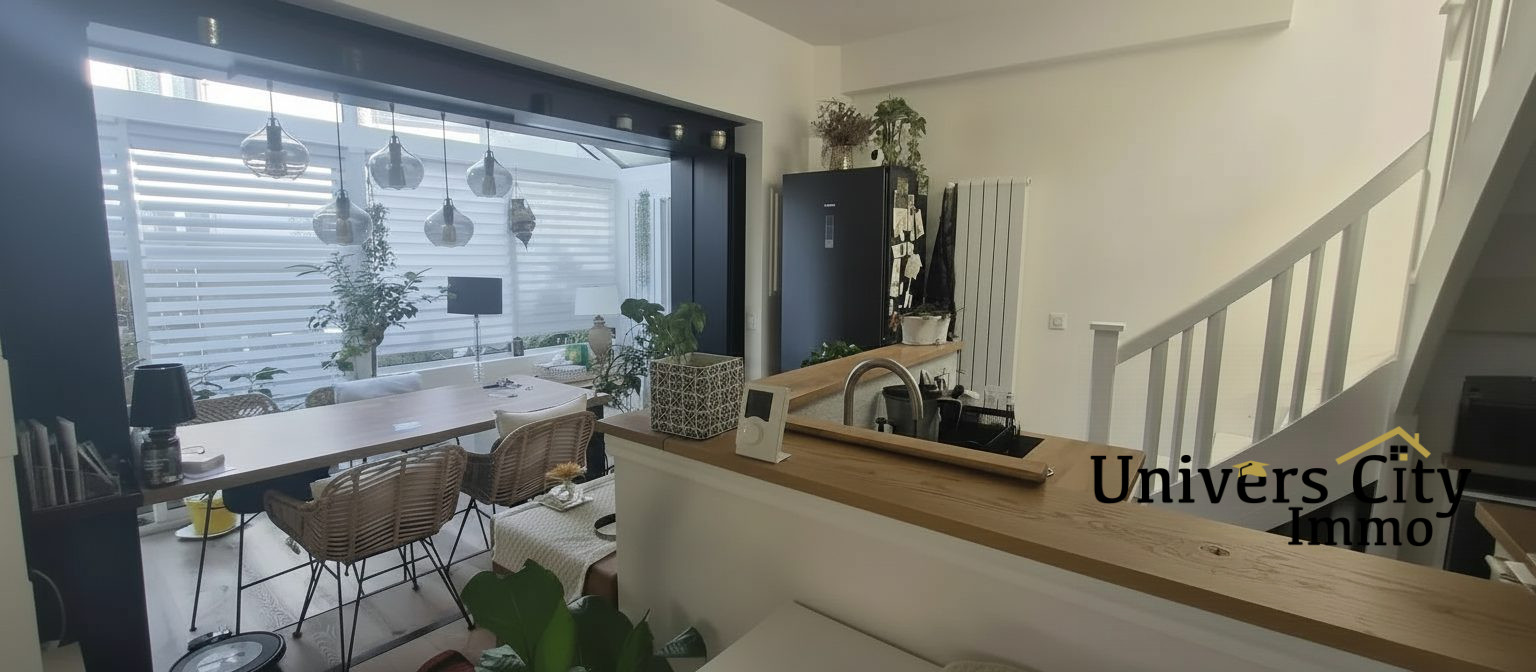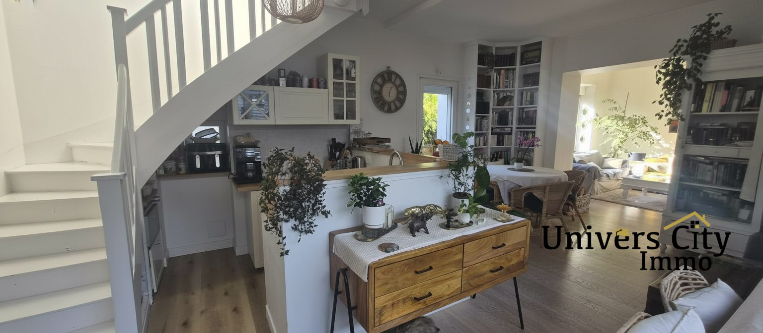...Au rez-de-chaussée :Vous découvrirez une belle pièce de vie lumineuse de 47 m² comprenant salon...