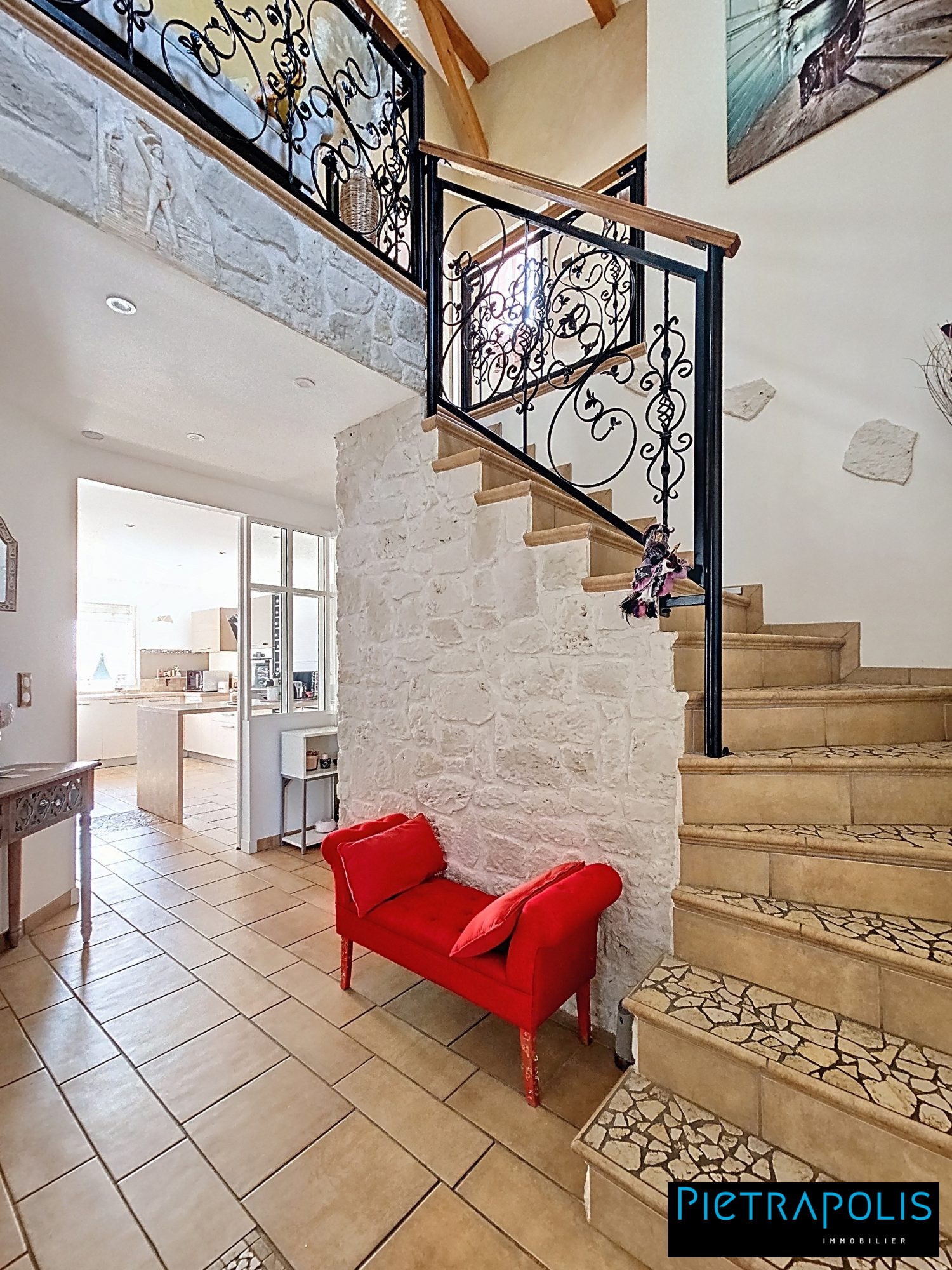 ...Séjour cathédrale avec Cheminée aux normes, grande cuisine indépendante de 30m2 avec coin repas,...