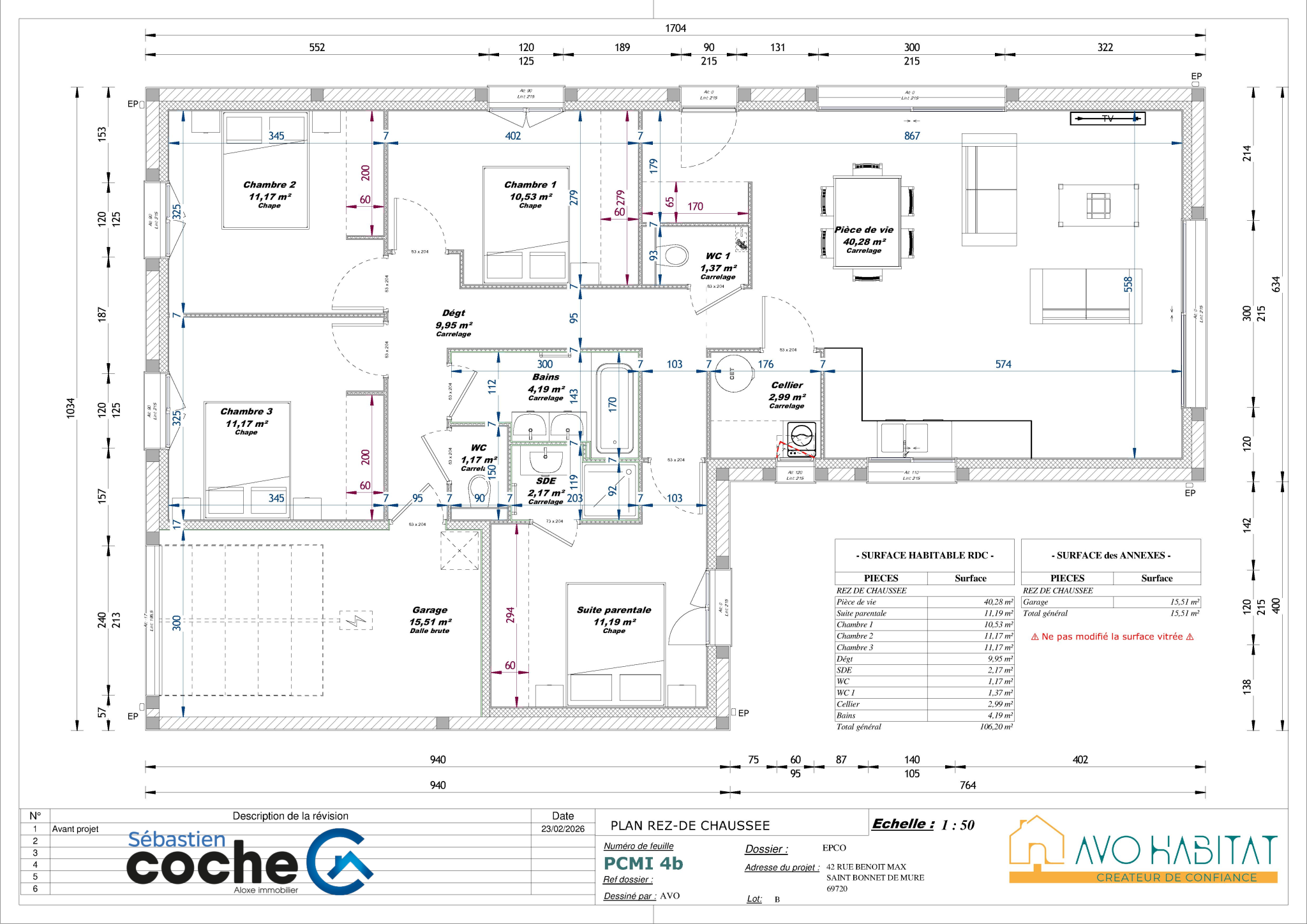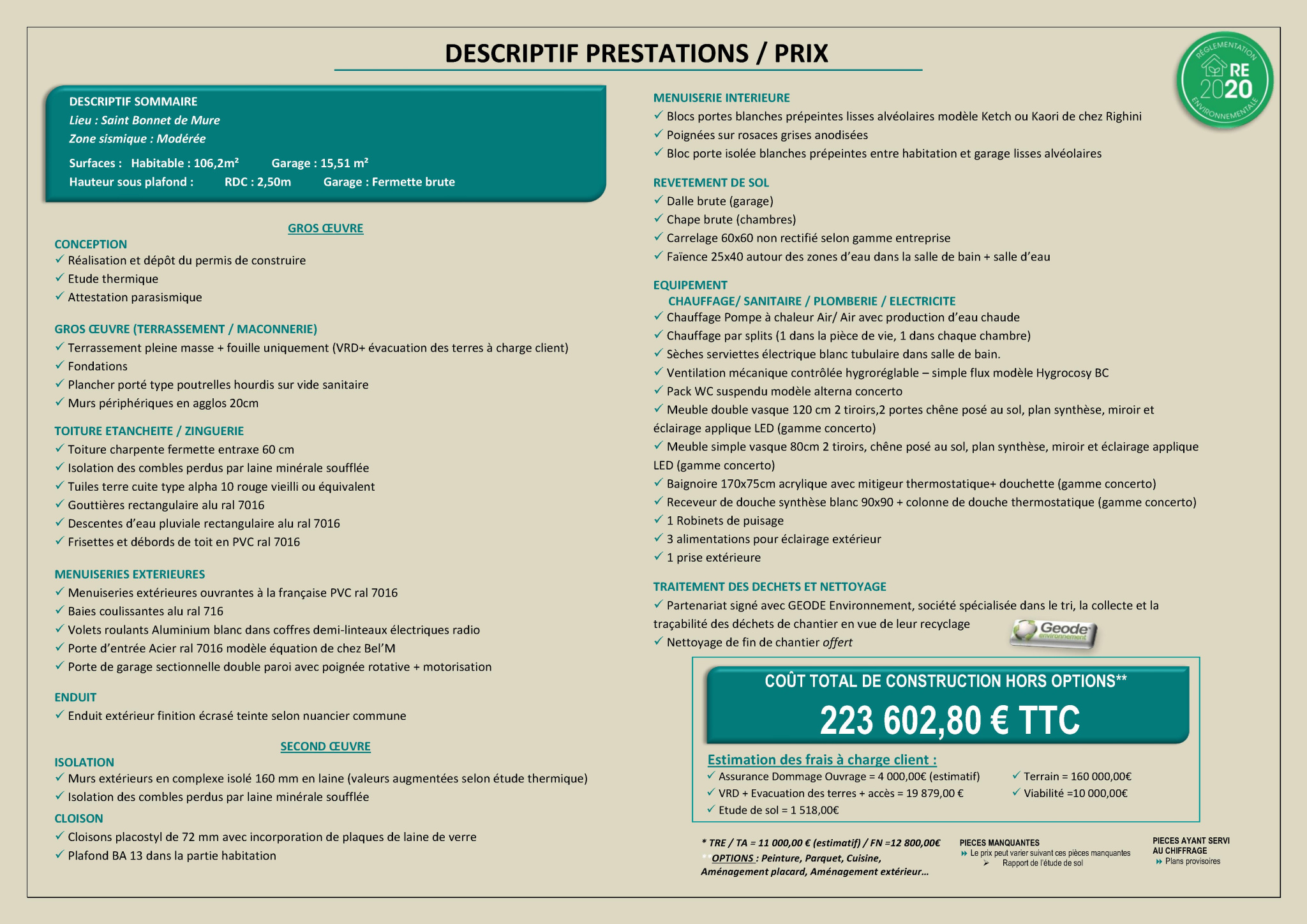 ...Le projet prévoit la réalisation possible d'une villa de plain-pied d'environ 106 m2 habitables,...