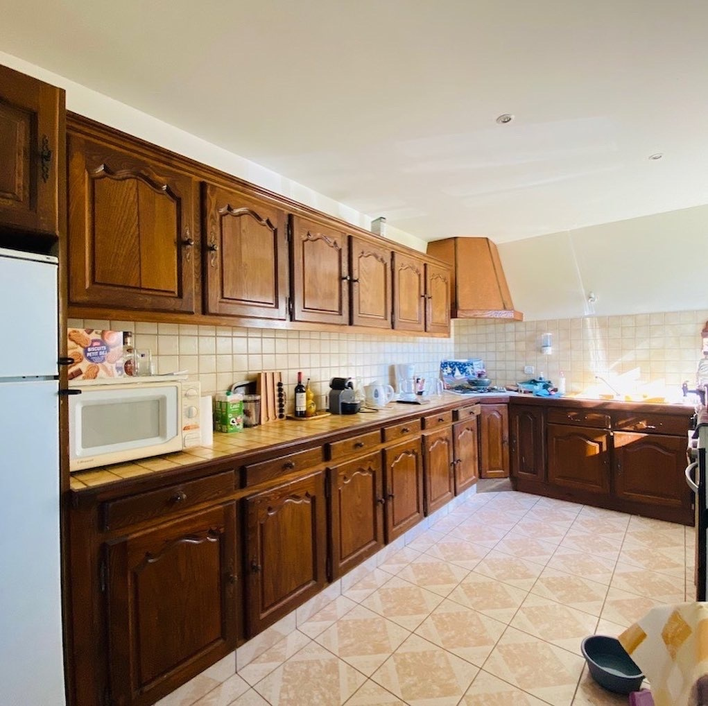 ...Elle se com­po­se d'une entrée des­ser­vant une grande cui­sine avec son Can­tou, une belle pièce...