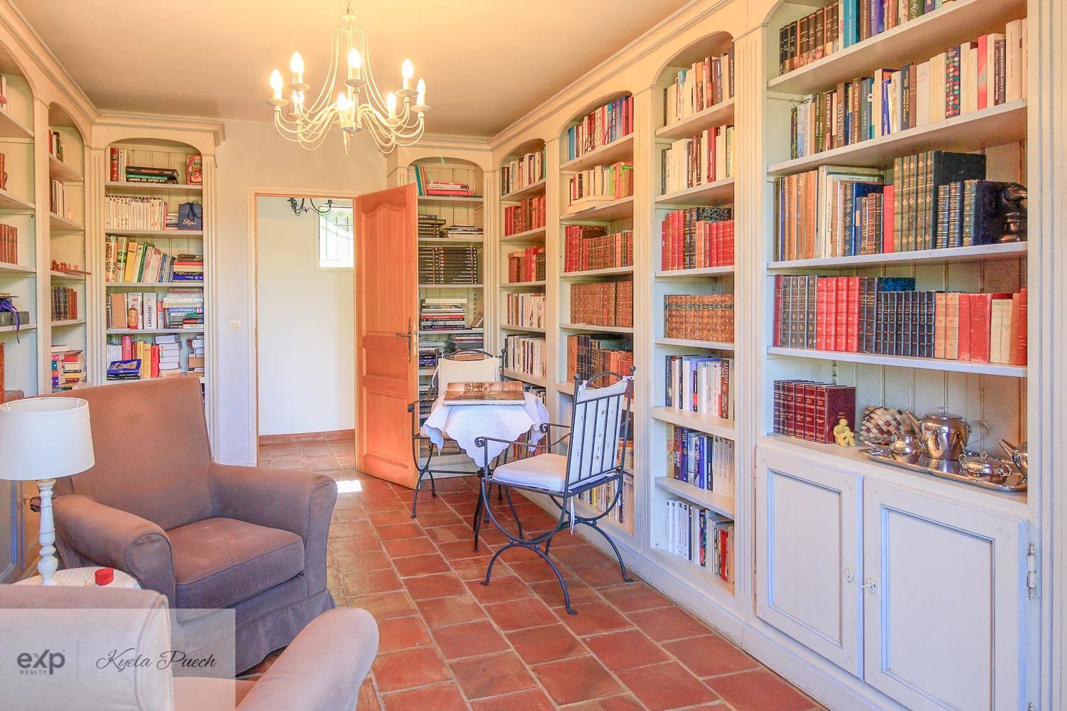 ...Le vaste séjour lumineux avec cheminée s'ouvre sur une terrasse ensoleillée pour des instants...