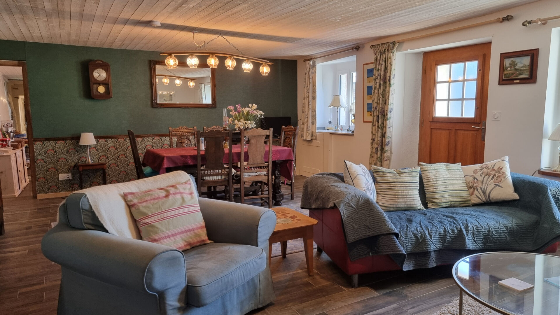... avec éléments modernes - Salon cosy avec poêle à bois, idéal pour des soirées détente - Salle...