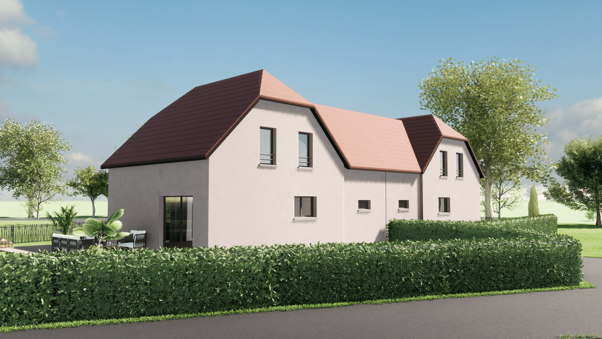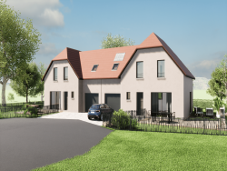 ...Dans le nouveau lotissement « La Clef des Champs », ce projet de maison accolée par le garage a...