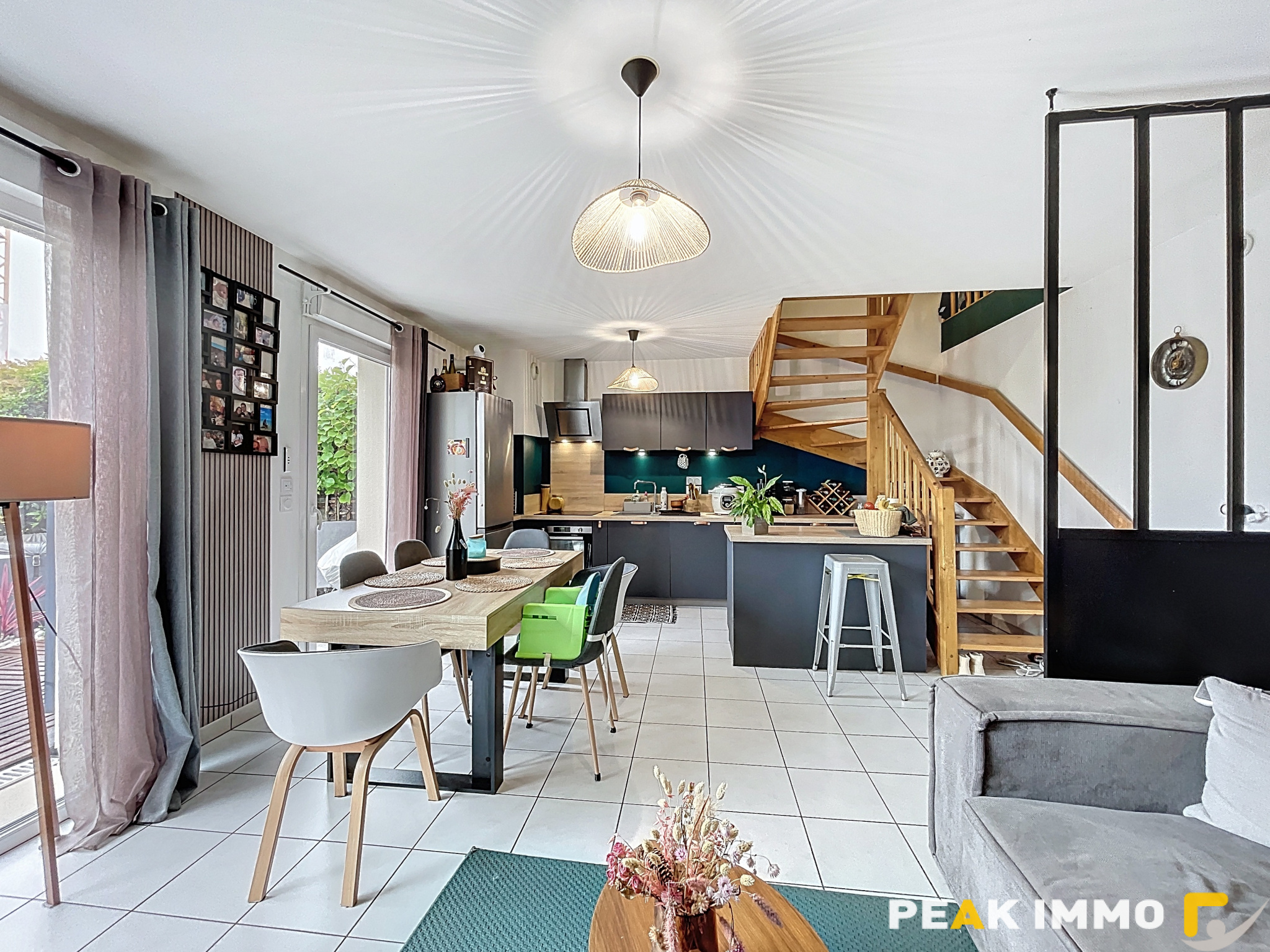 ...Au rez-de-chaussée, vous découvrirez une entrée menant à une cuisine ouverte sur le séjour, avec...