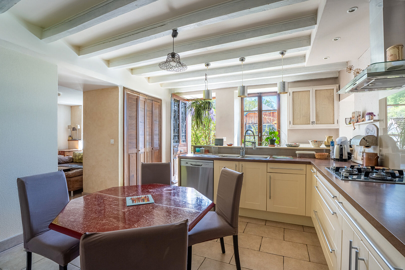 ...Un intérieur chaleureux et fonctionnelCette maison de 5 pièces, réparties sur 2 niveaux, est...