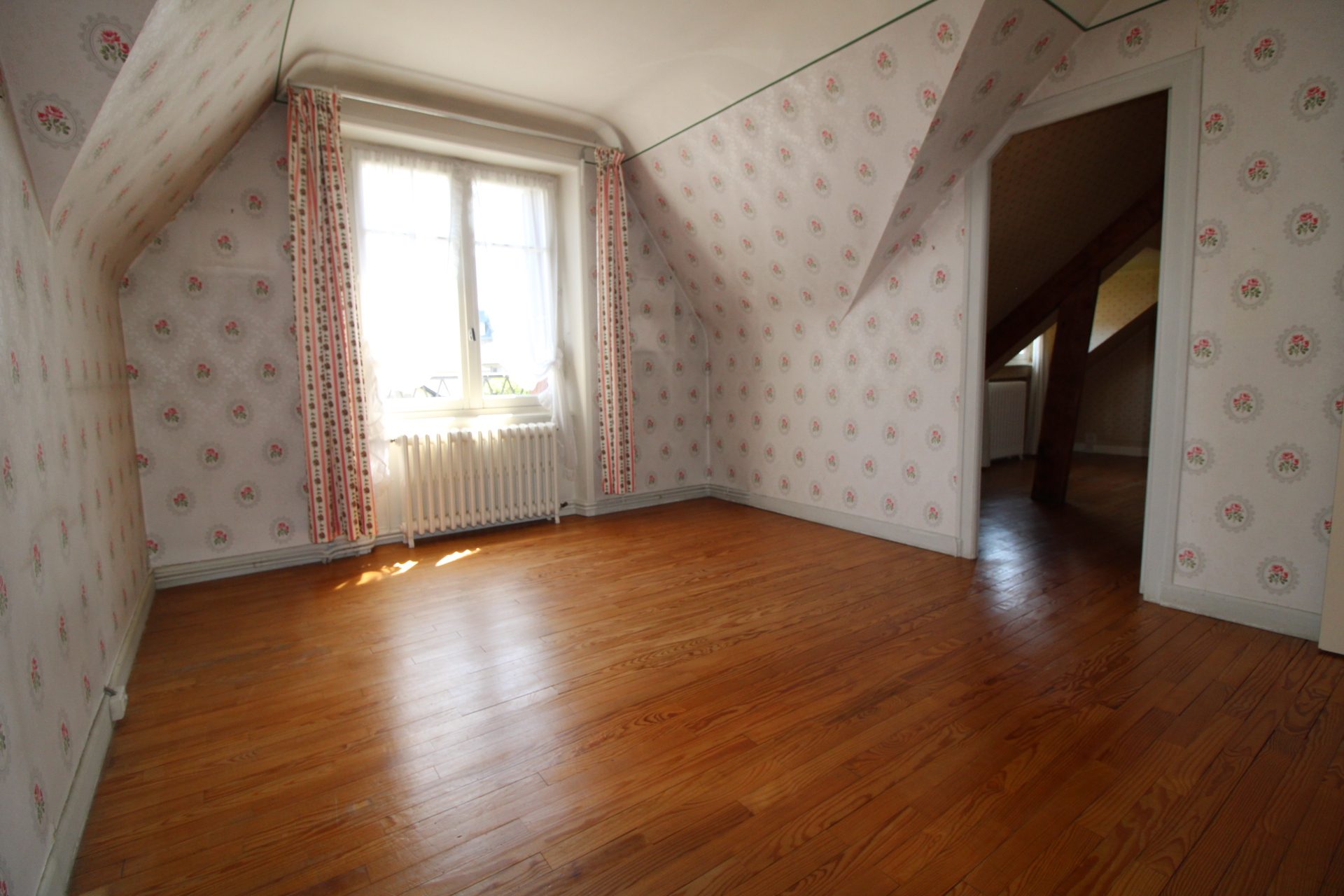 ...c, placards, à l'étage: deux grandes chambres, débarras, placards Garage, cave et chaufferie...