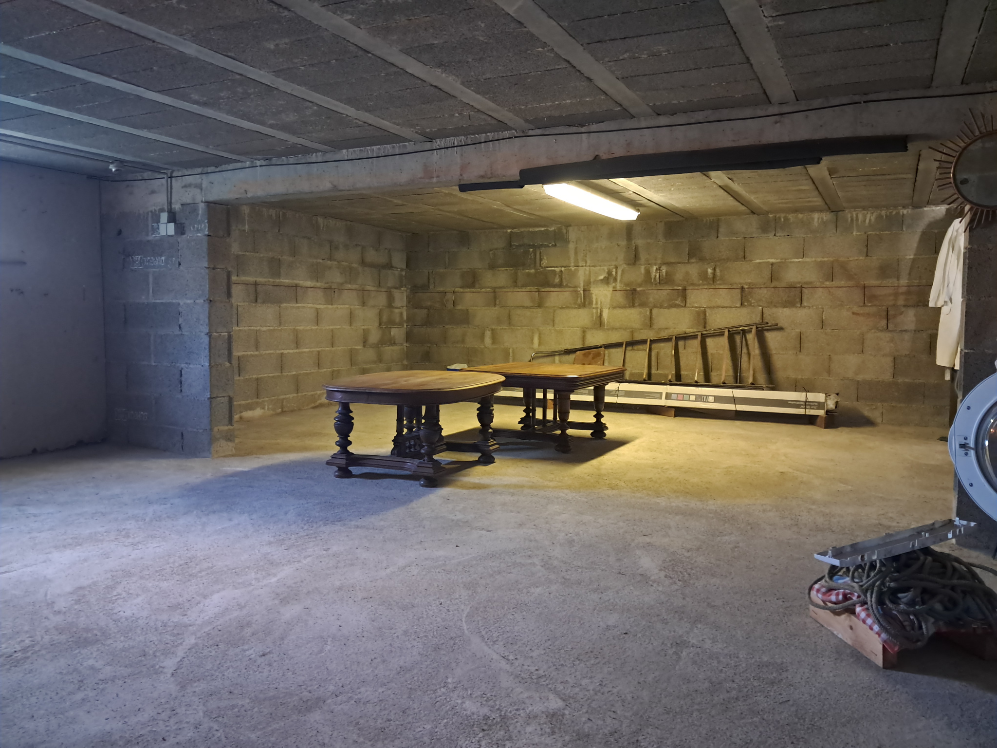 ...Au RDC : un grand garage, une pièce servant de buanderie...