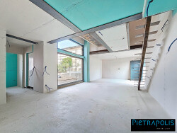 ...Au rez-de-chaussée, l'entrée mène à une vaste pièce de vie d'environ 55 m², avec espace cuisine...