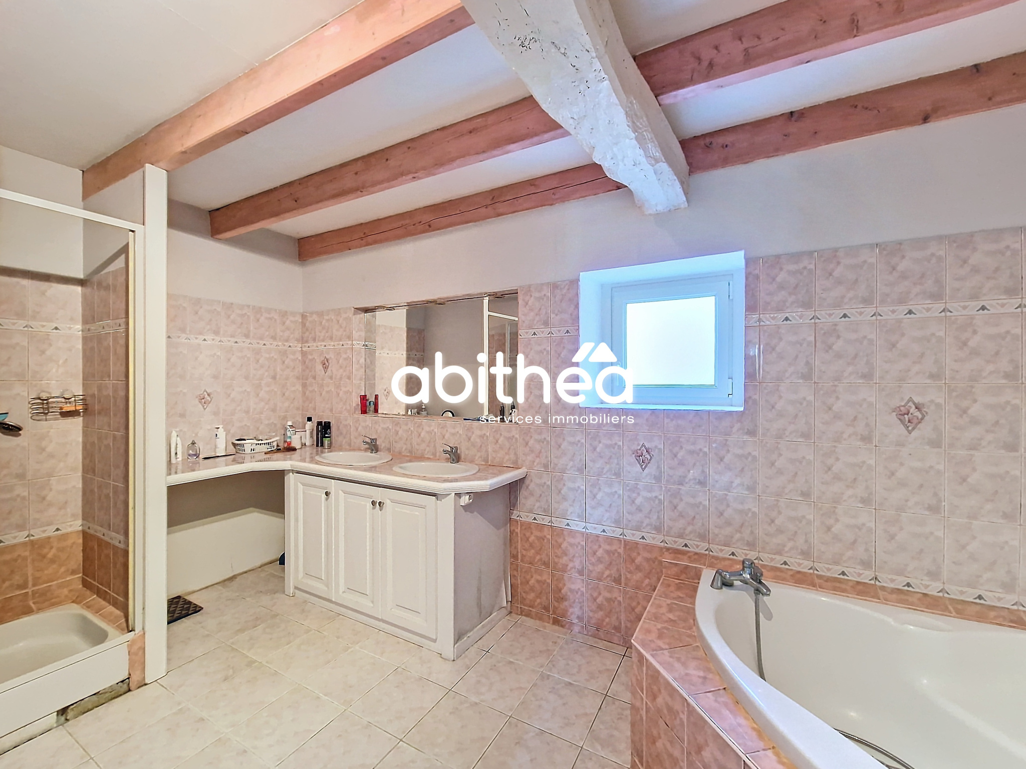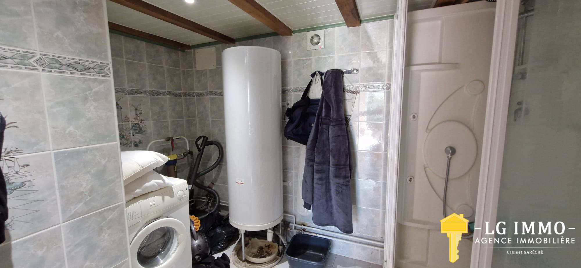 ...S'ajoutent à ce niveau, une salle d'eau de 7,30 m2 avec branchement machine, un WC indépendant,...