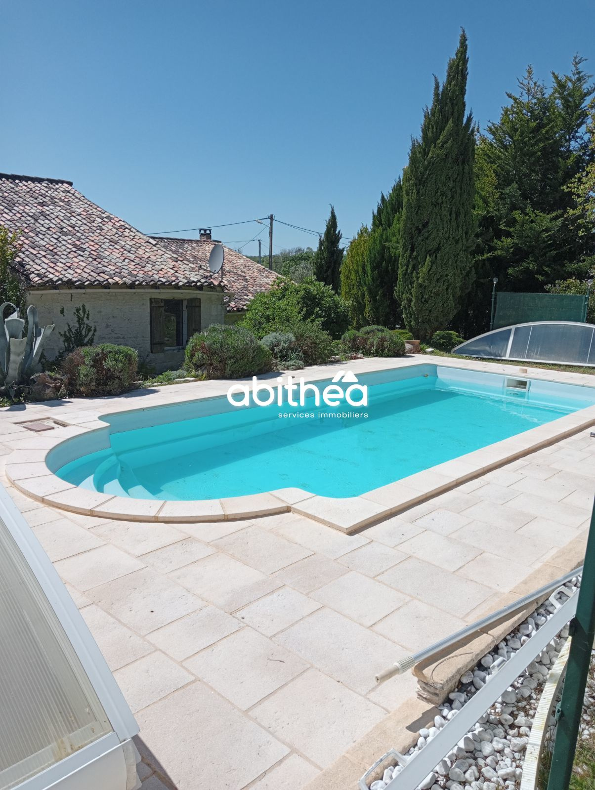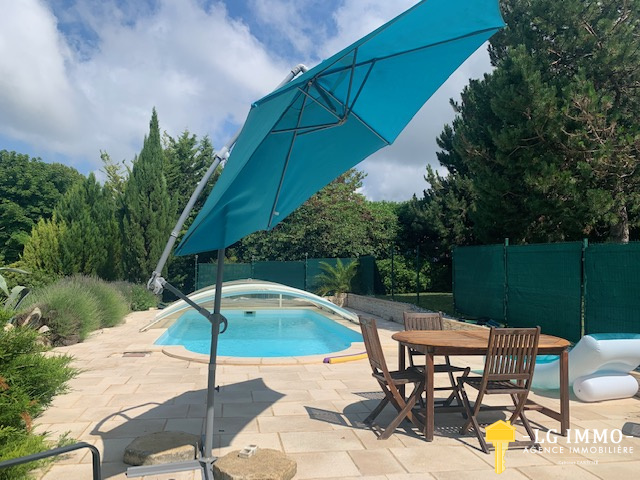 ...Arboré, le jardin a été soigneusement aménagé avec ses allées, ses terrasses et sa piscine de 9x4...