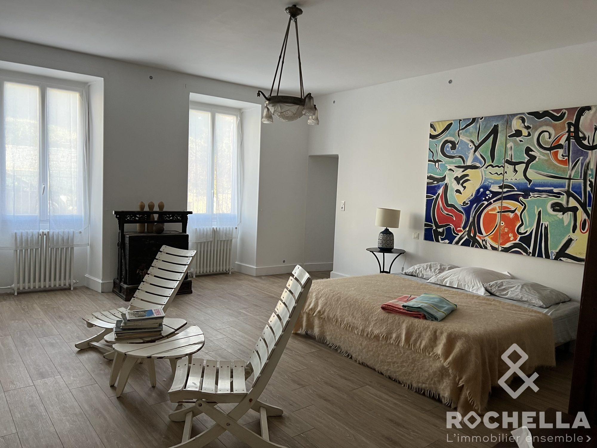 ...La propriété comprend trois chambres de 14,9 m2, 14 m2 et 12,8 m2, une grande cuisine/salle à...