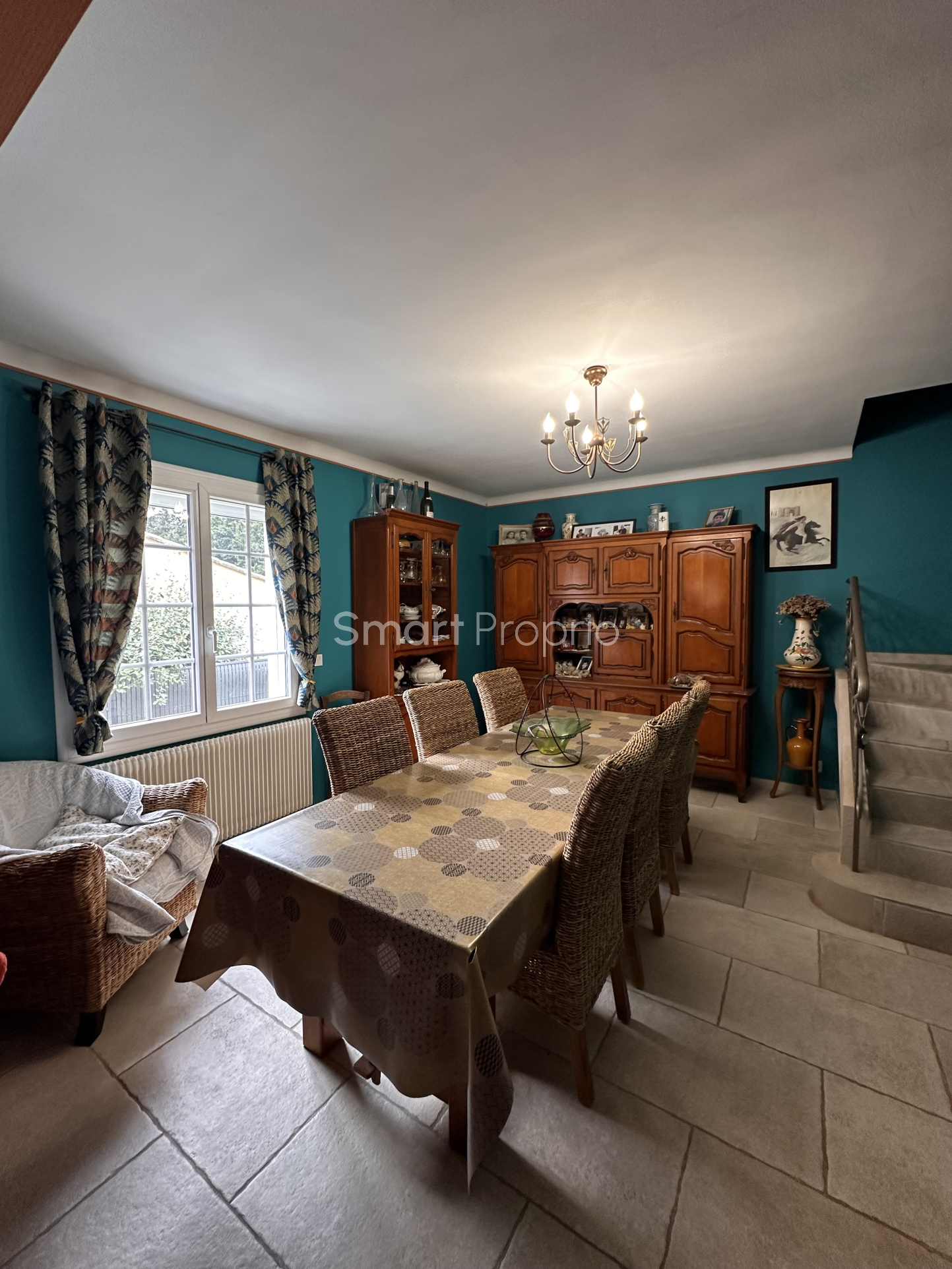 ...Elle se compose à l'étage d'un lumineux séjour de 30 m² avec climatisation et cheminée insert,...
