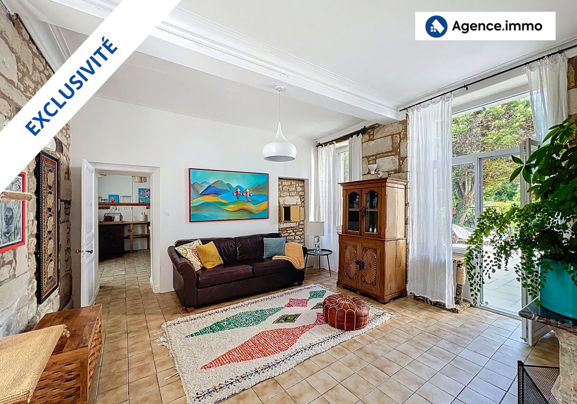 ...Son intérieur aux murs en pierre apparente, ses volumes généreux et ses multiples accès en font...