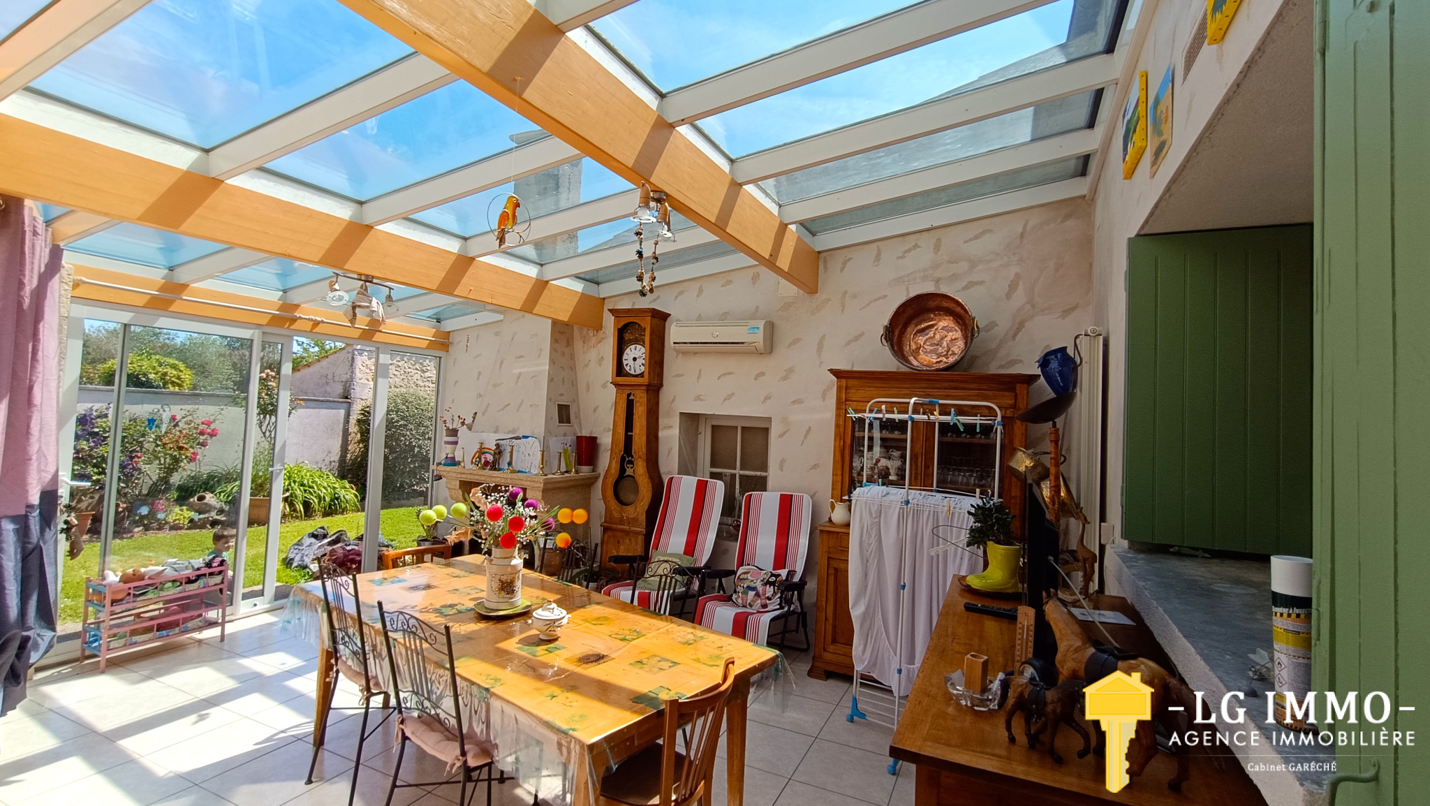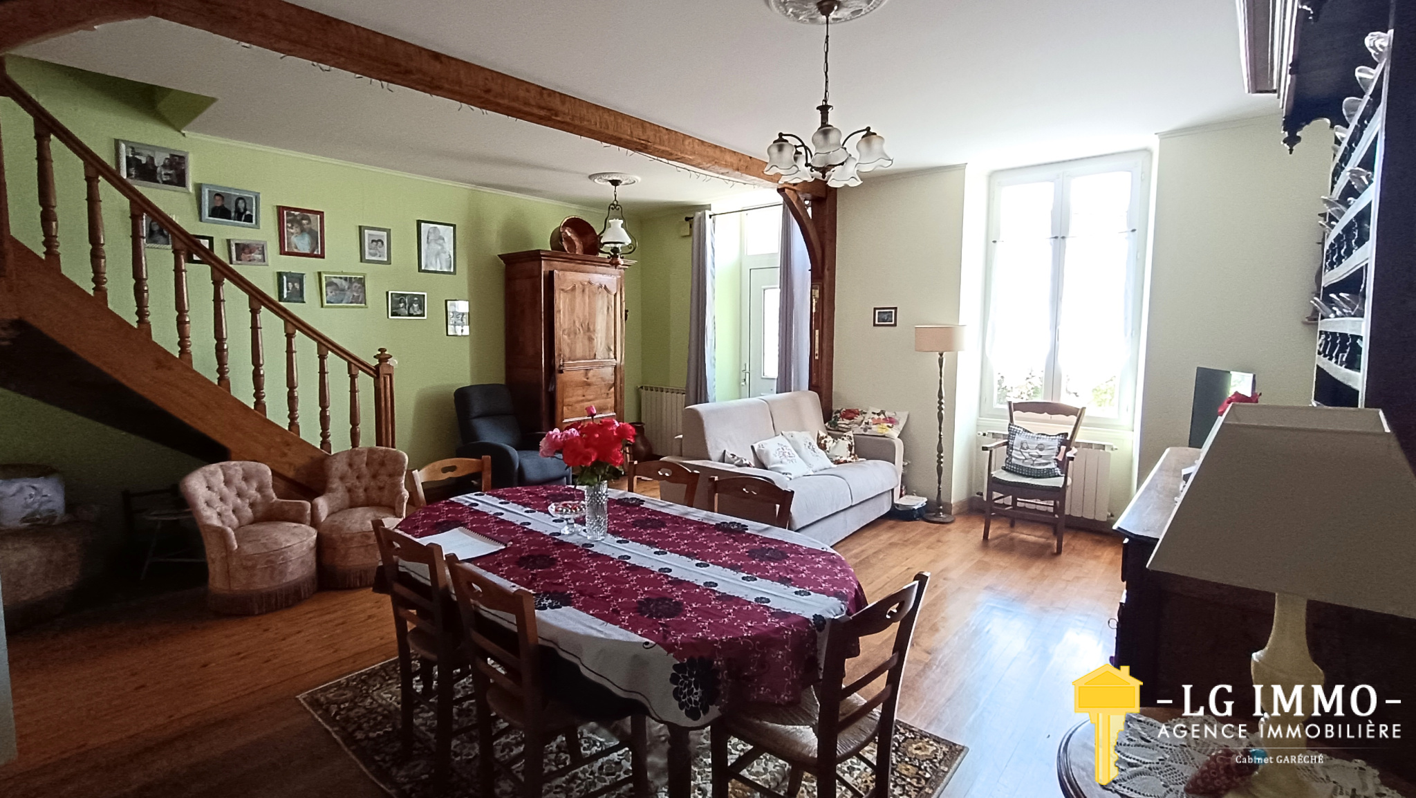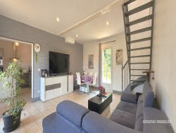 ...Elle est édifiée sur un terrain clos et arboré de 1 450 m² avec terrasse et garage...