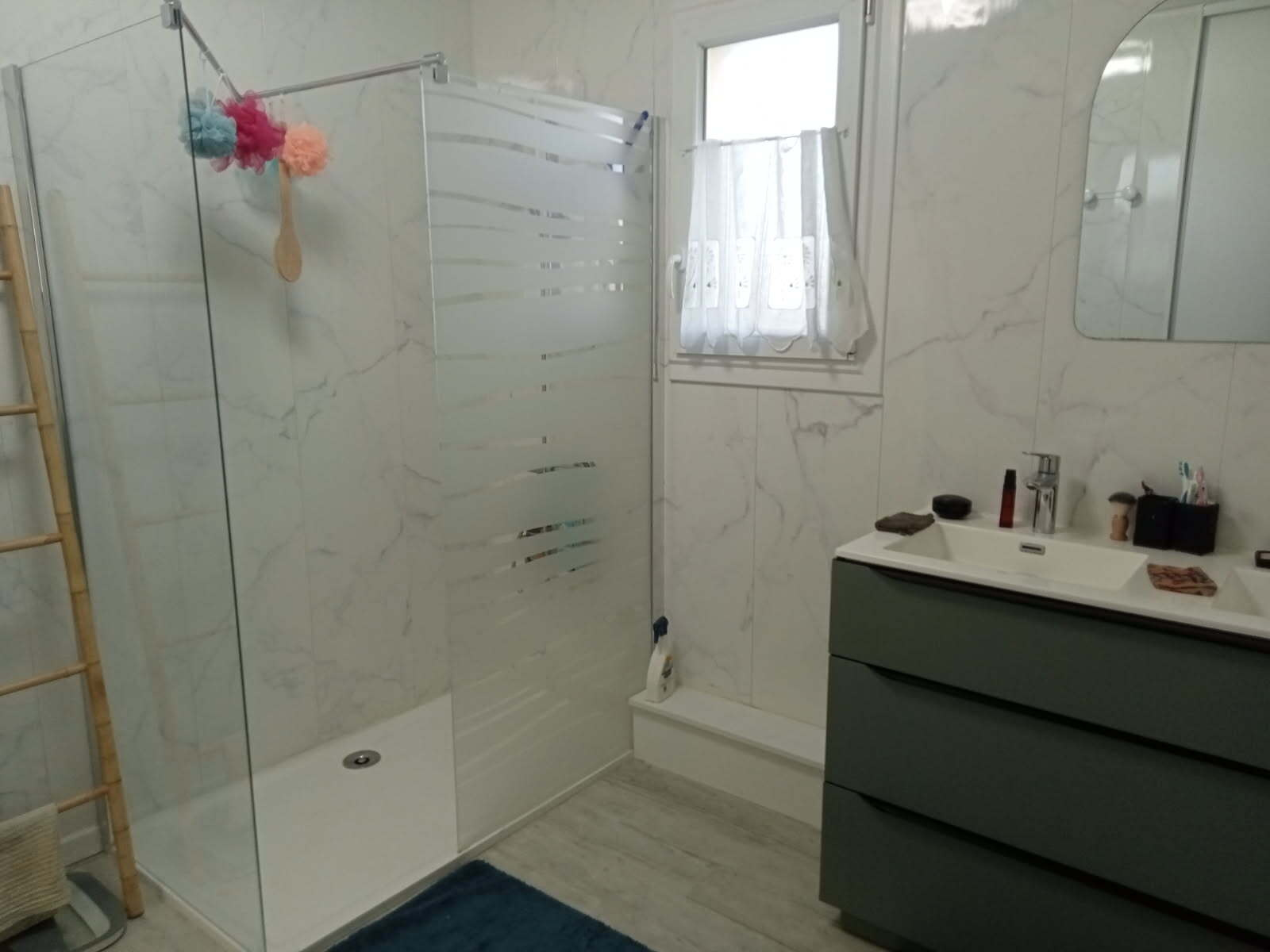 ...Au demi palier supérieur : vous trouverez un salon avec ses baies coulissantes, dégagement,...