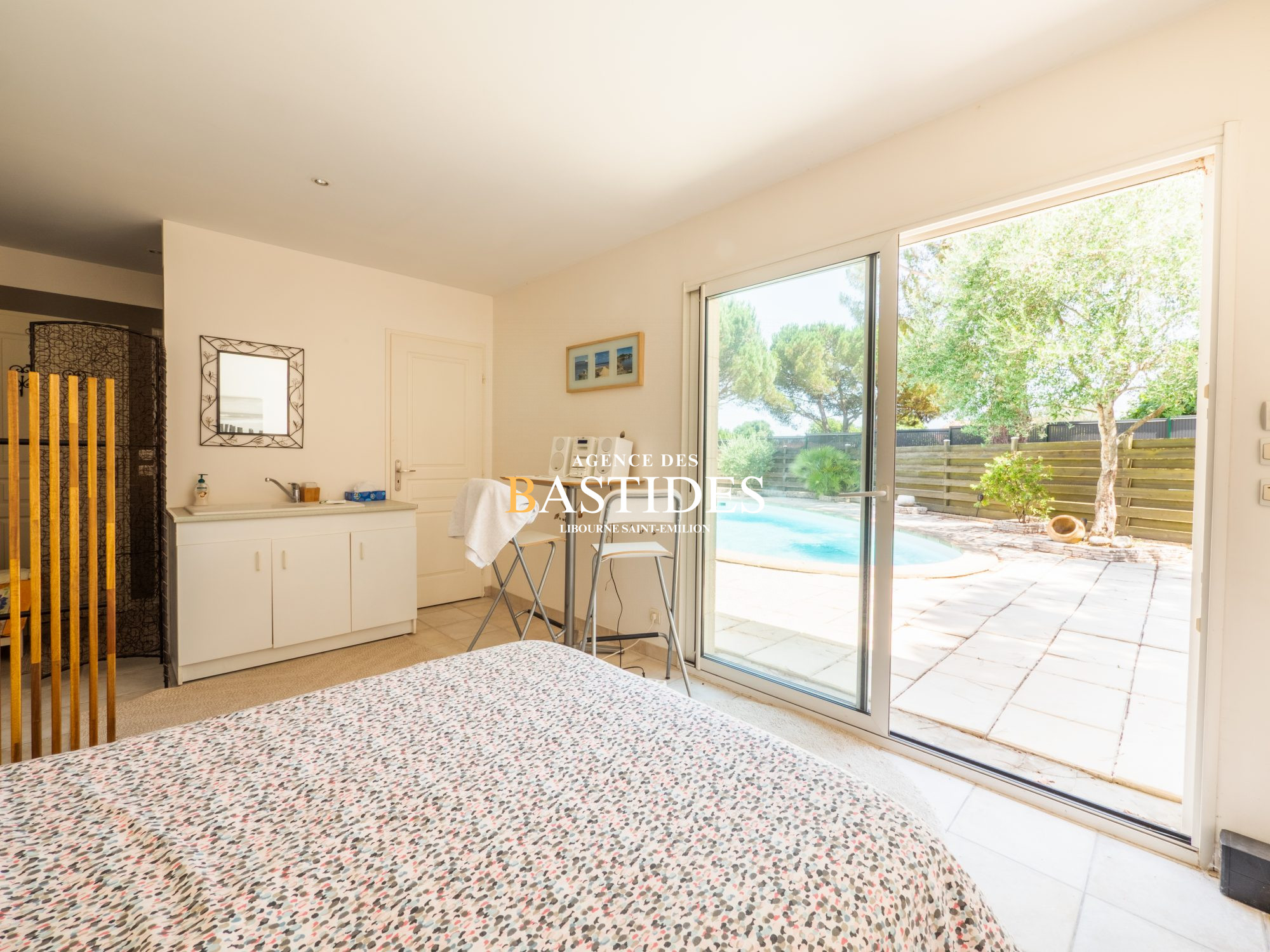 ...La partie habitation plein-sud propose un espace séjour, bureau et cuisine d'une part, et un...