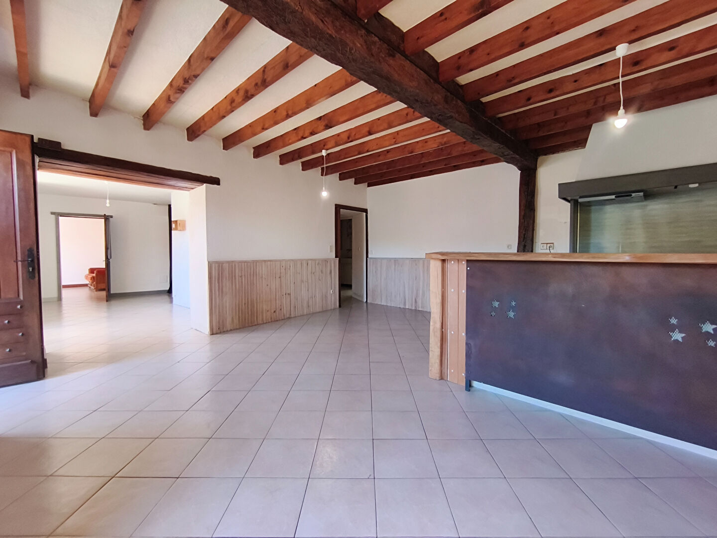 ... bois, cette ancienne grange est entièrement rénovée avec goût ! On apprécie la grande pièce de vie ...