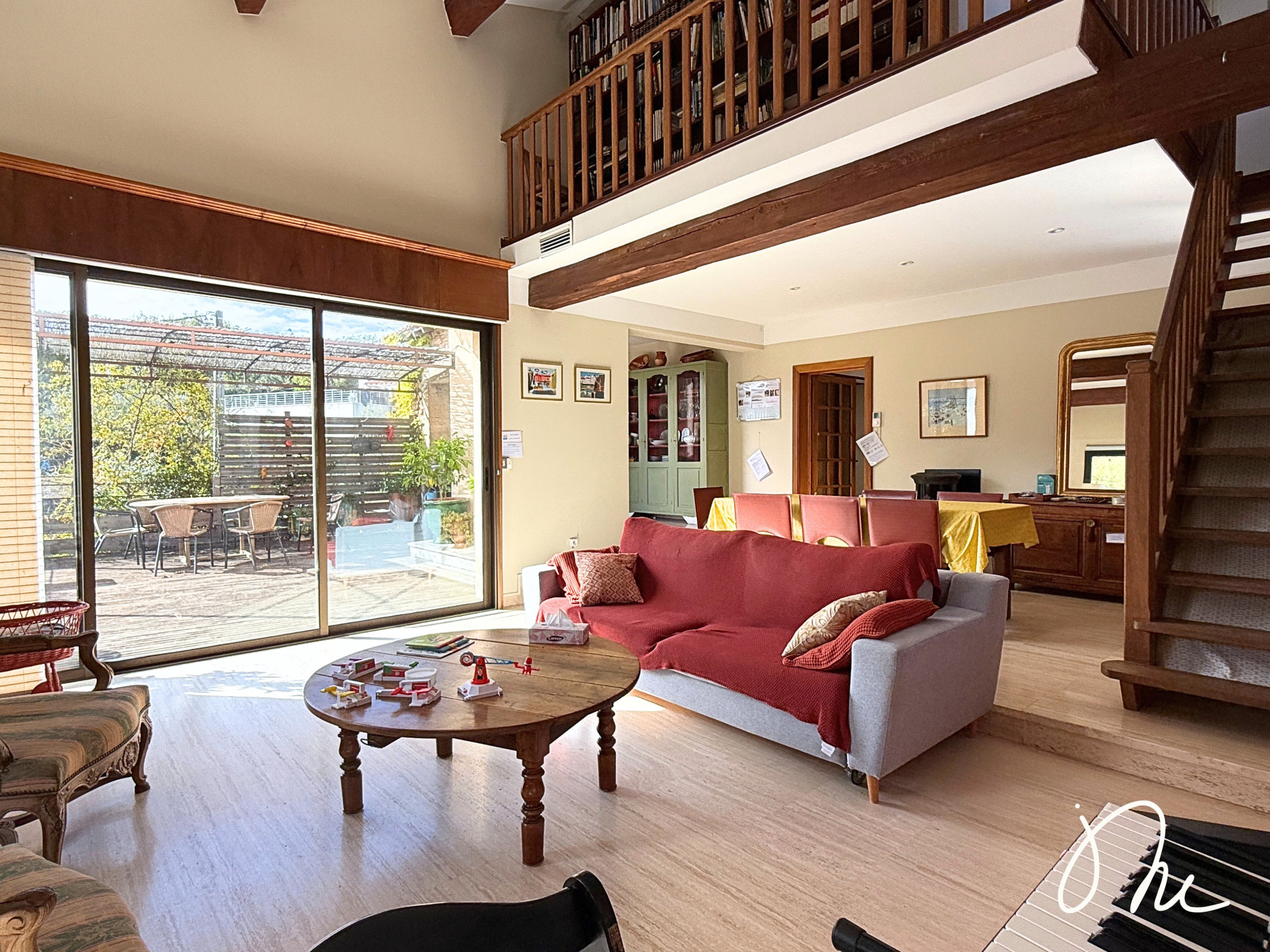 ...Au premier étage, vous découvrirez un salon de 22 m², équipé d'un poêle à granulés, une...
