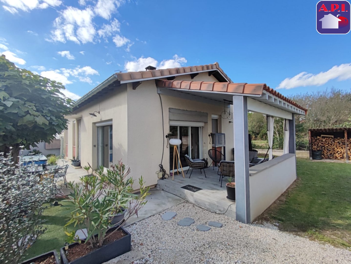 ...Les atouts de ce bien :Plain-pied lumineux : une vaste pièce de vie de 36 m2 avec cheminée, une...