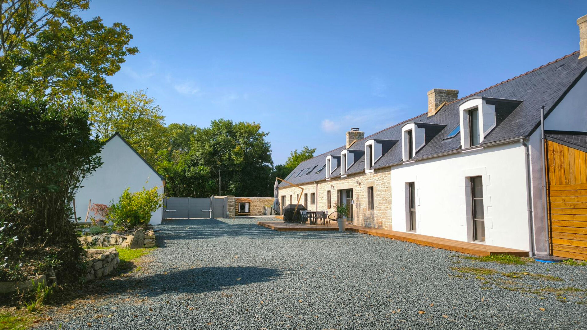 ...Cette ancienne longère traditionnelle restaurée, dispose de 12 hectares de landes sauvages ainsi...