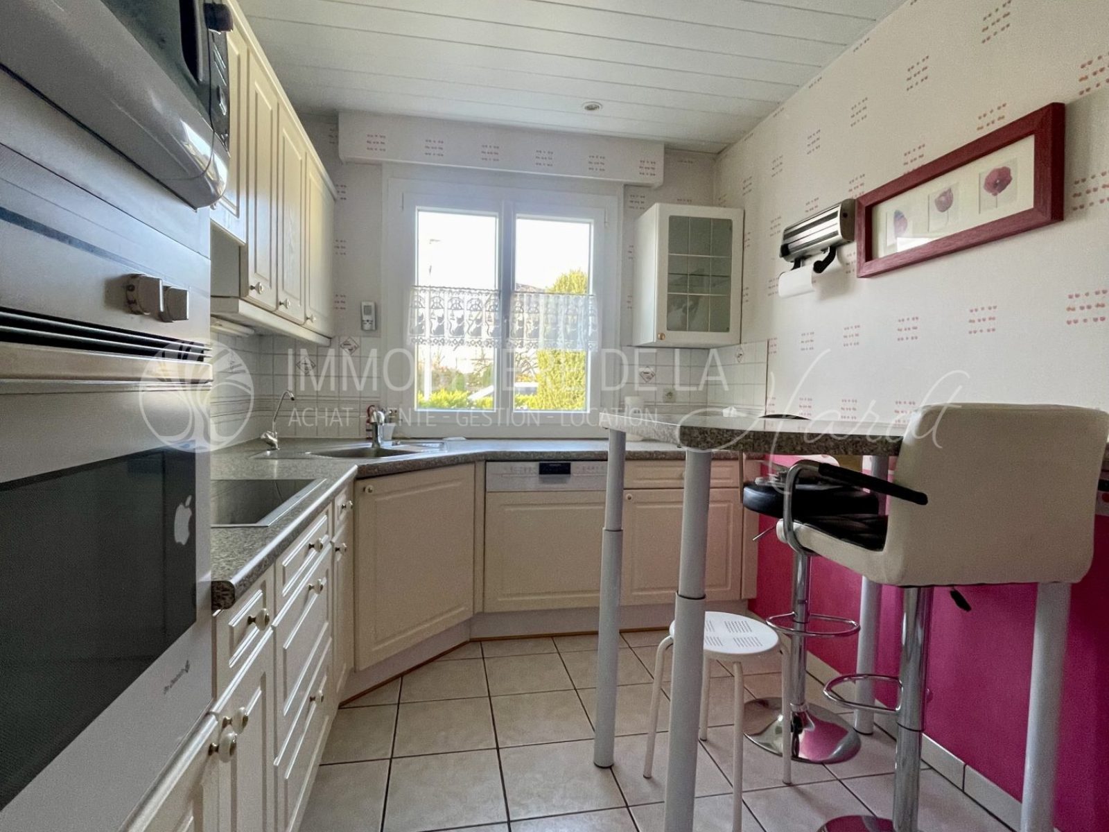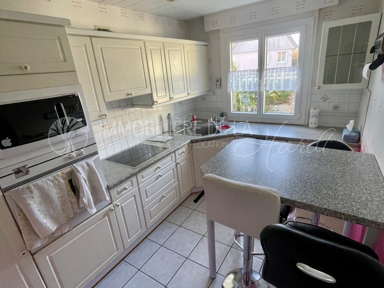 ...Découvrez au rez-de-chaussée, une entrée, un séjour, une jolie cuisine aménagée et équipée...