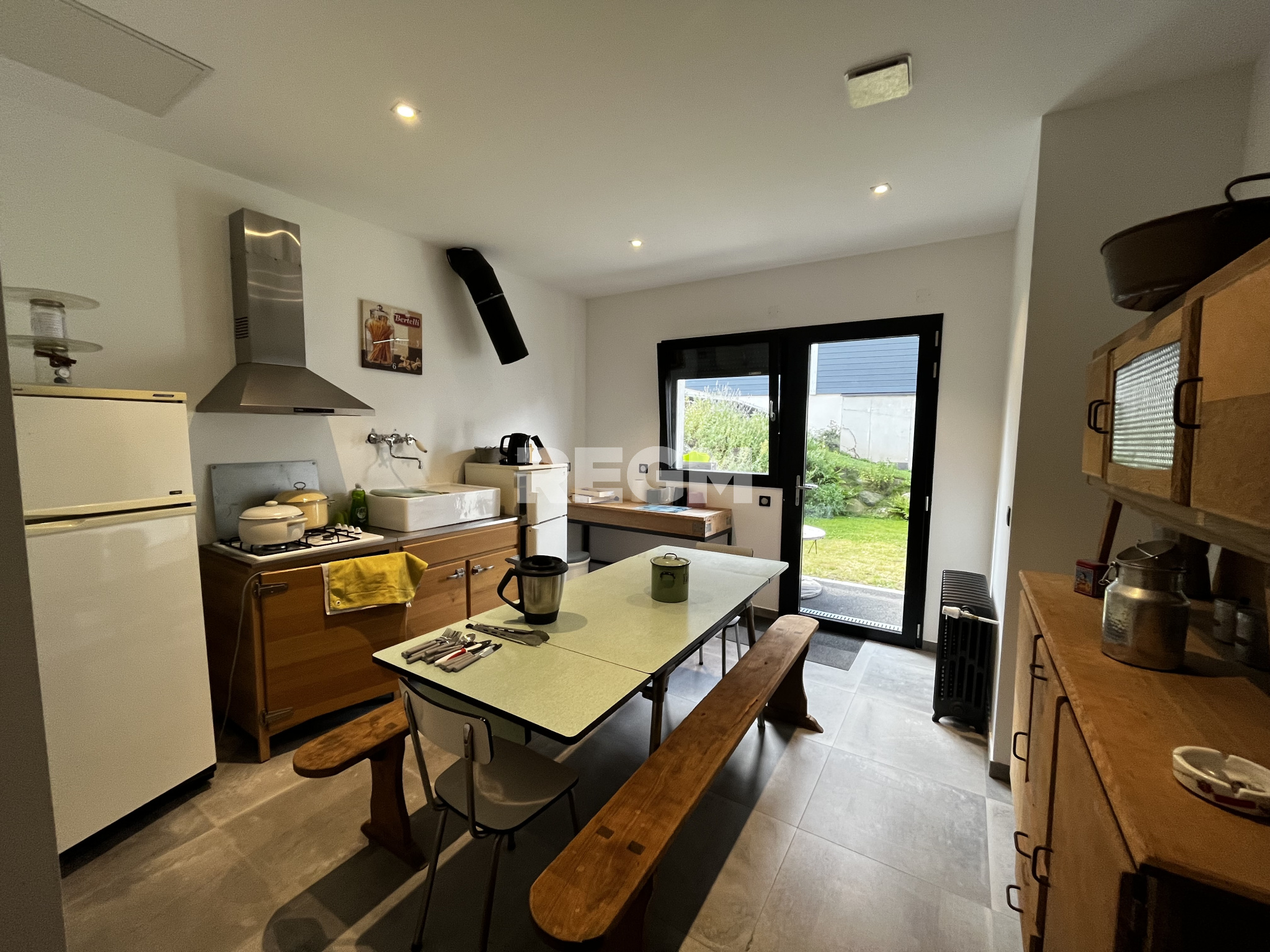 ... 7 km de la plage? Cette maison à des beaux volumes, elle est mitoyenne sur un coté. Elle dispose d...