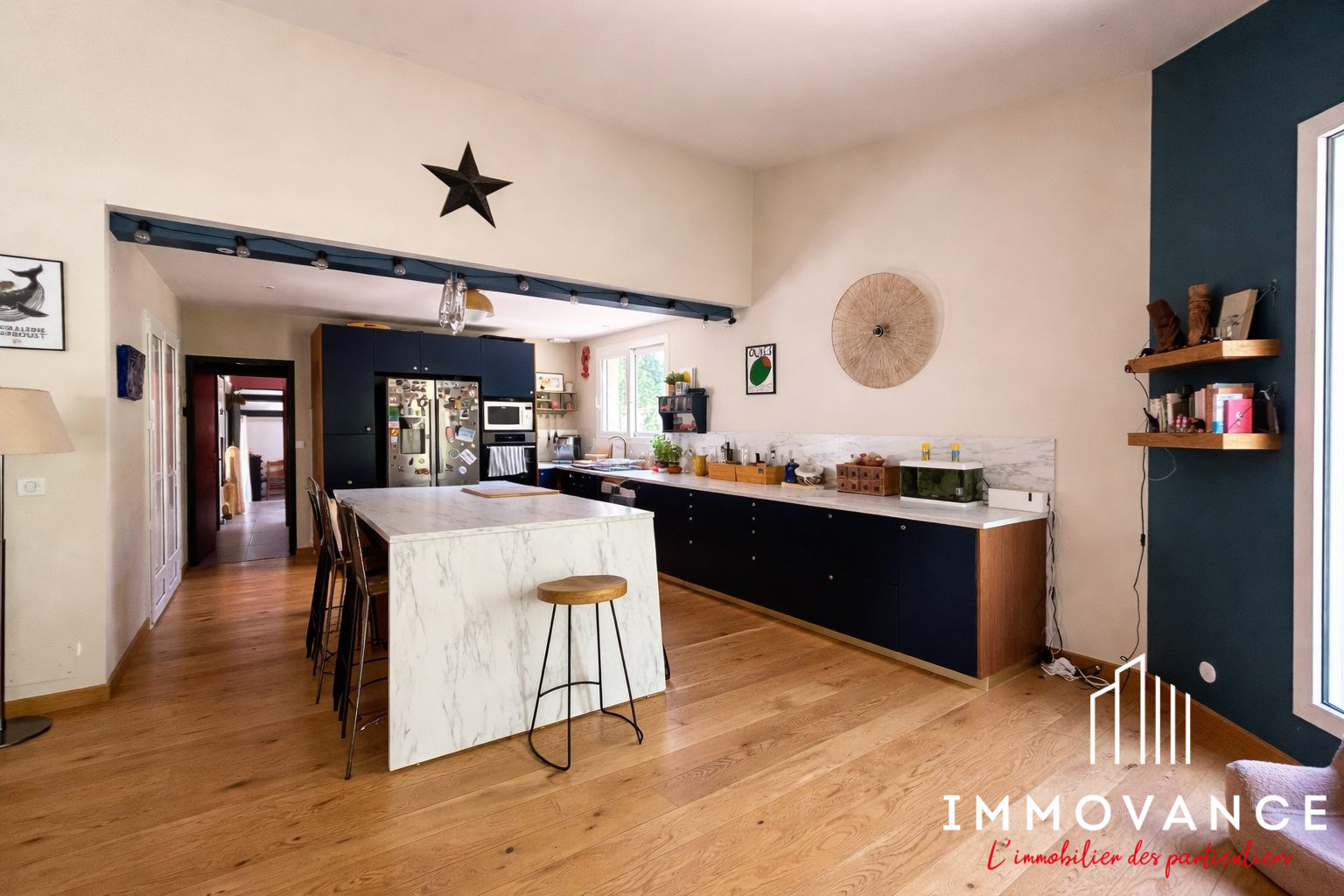 ...Composée en grande partie de plain pieds, une grande pièce de vie traversante et trés lumineuse...