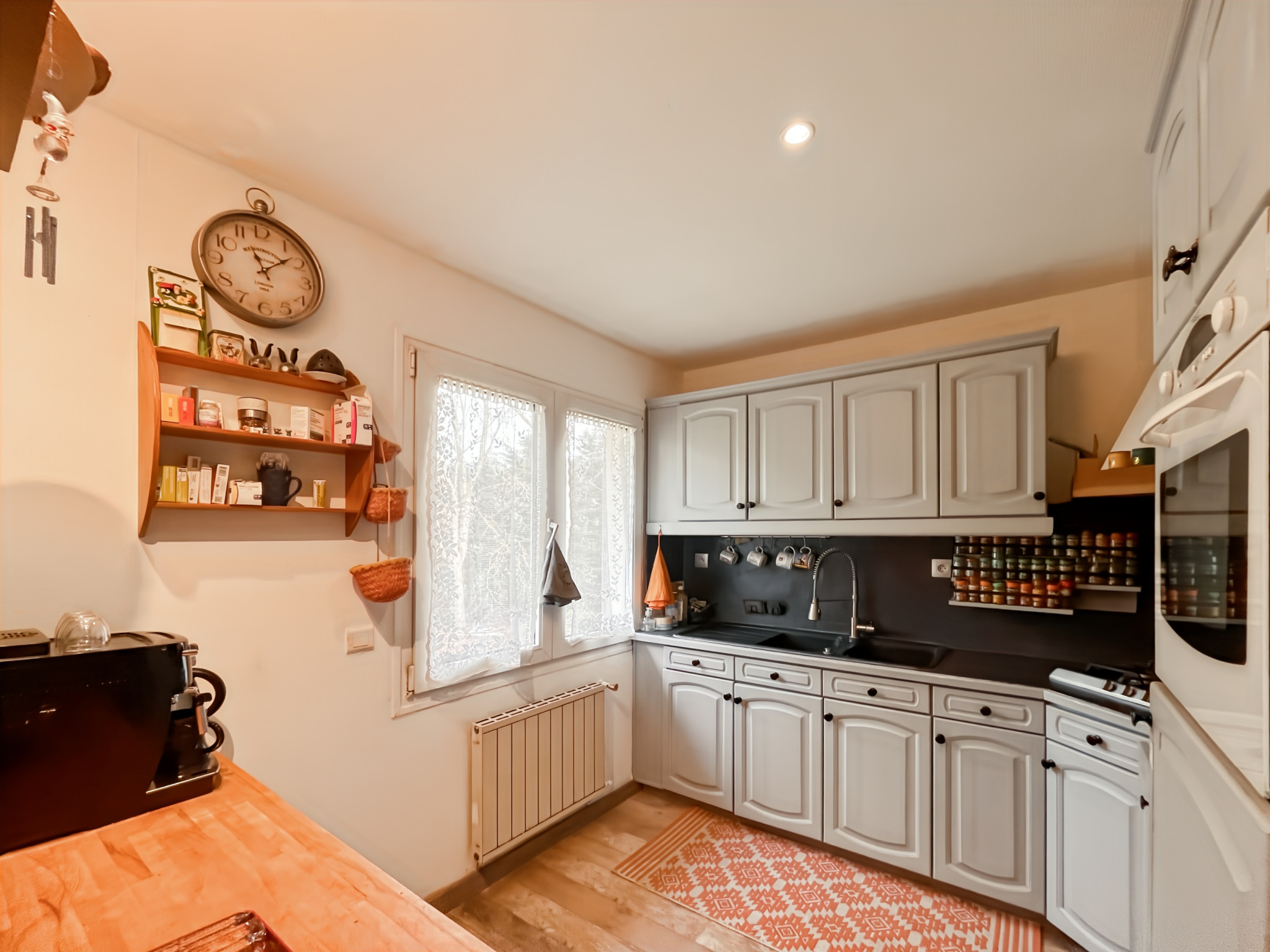 ...Niveau principal - Double salon / séjour lumineux de 30 m2, agrémenté d'une cheminée -Cuisine...