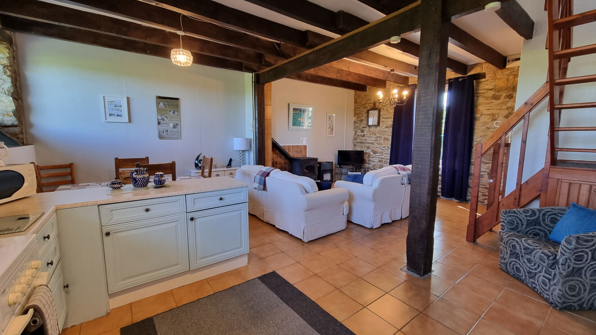 La longère, empreinte de caractère, est divisée en trois logements :