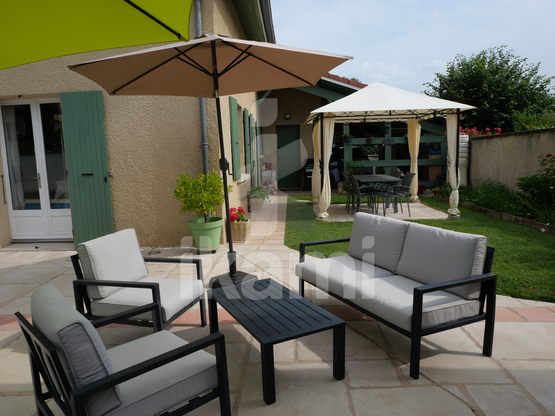 ...Elle se compose d'un beau séjour avec accès direct au jardin, trois belles chambres, une grande...